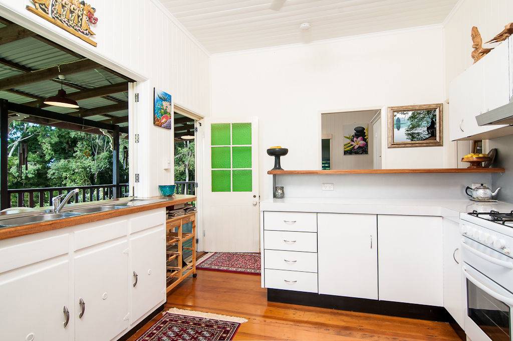 The living room features an open plan design with polished floor boards, individual opening windows allowing great airflow through the home coupled with ceiling fans, ensuring there is a constant breeze to keep you cool through the warmer months... A dividing wall separates the living area and kitchen which opens out on to the veranda making it a perfect spot for creating family meals as alfresco dining would be irresistible out on the beautiful veranda...
