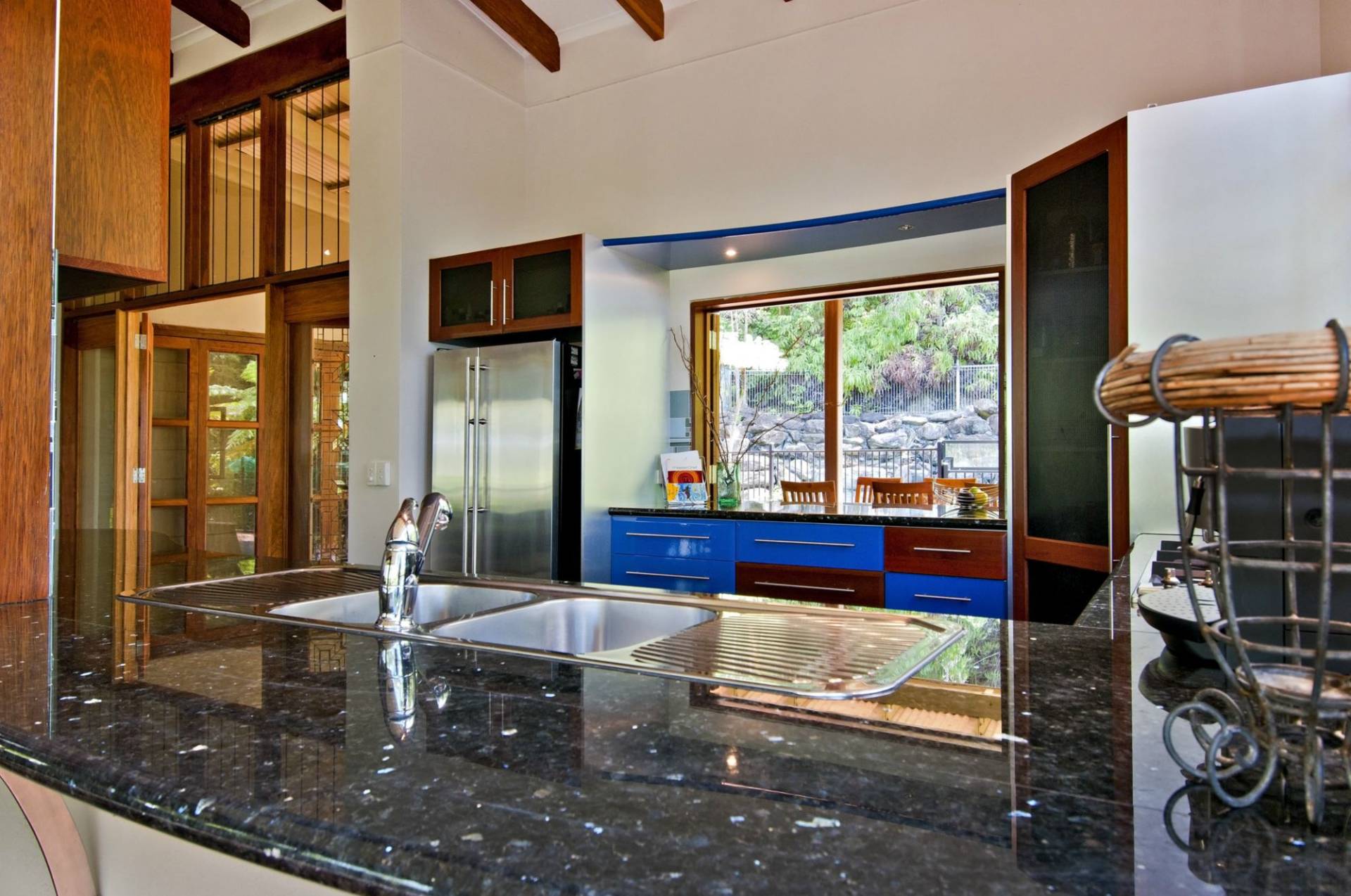 * Large four bedroom three bathroom modern home on 3.29 acres, features natural materials such as New Guinean rosewood, bamboo plantation timber flooring, stone and granite finishes.