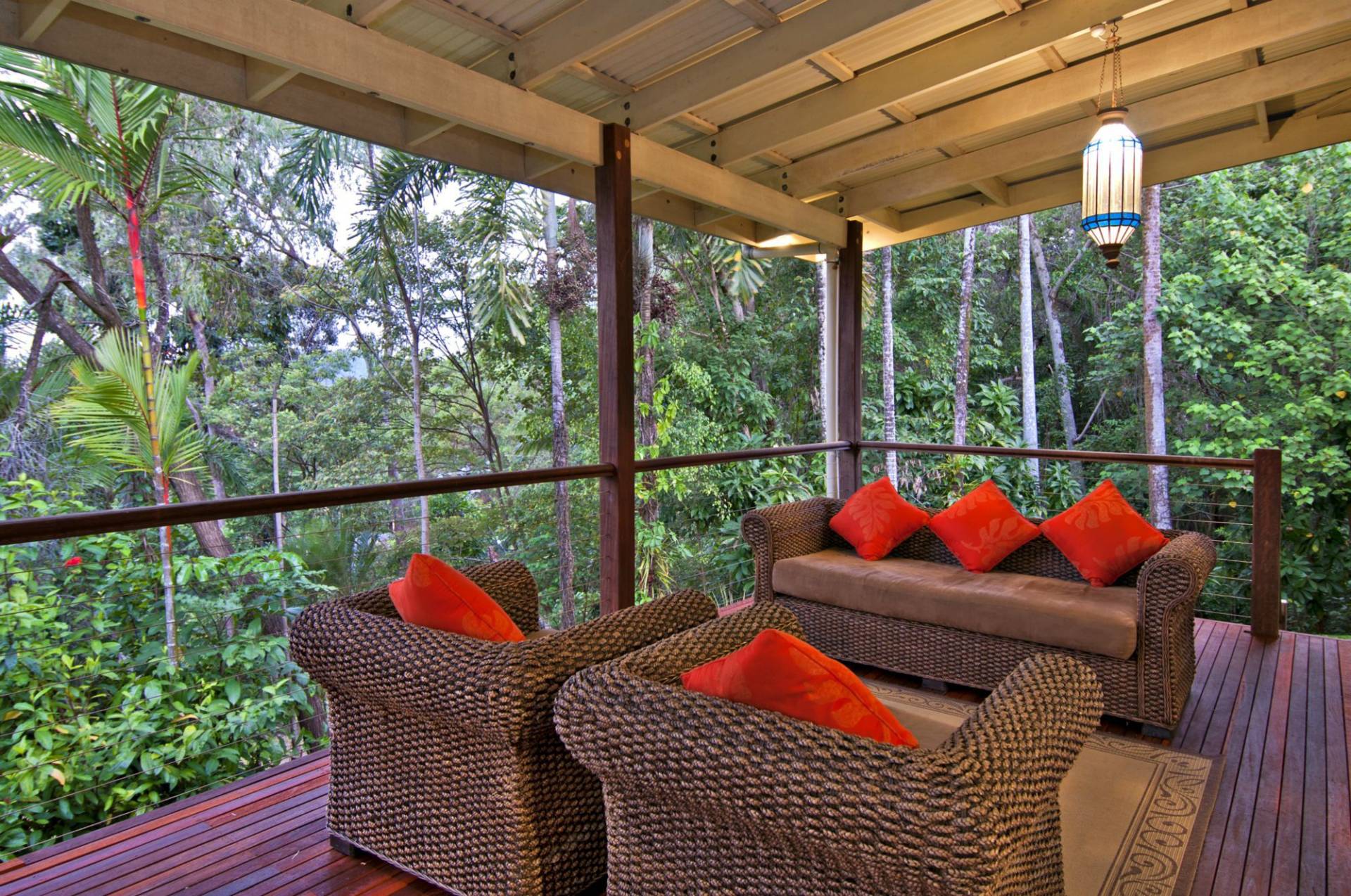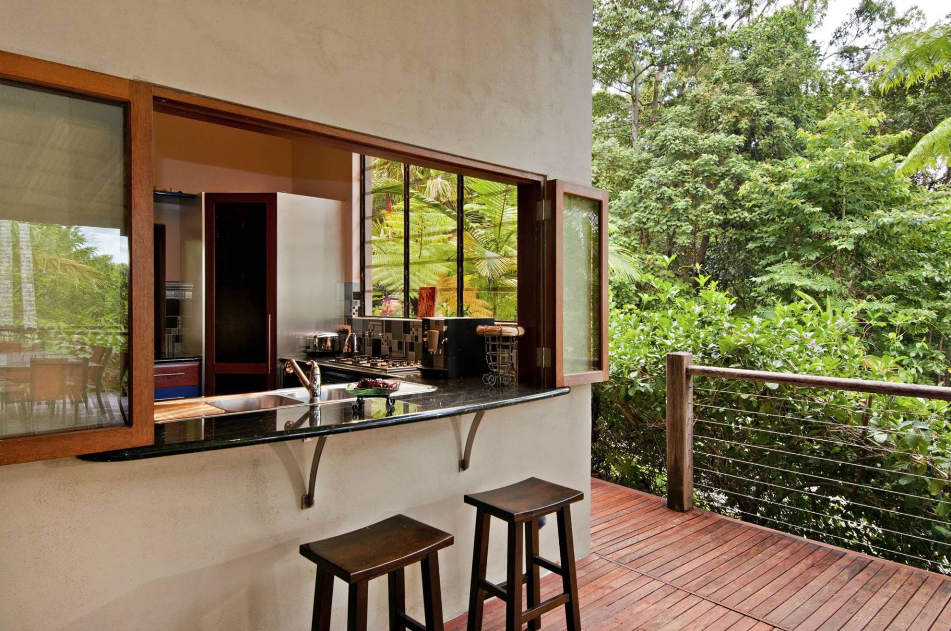 * Every room in the house opens onto the 200sqm Kwila hardwood deck with deep eves providing protection from the direct sun, capturing breezes from every direction and filtering cool air through the trees.