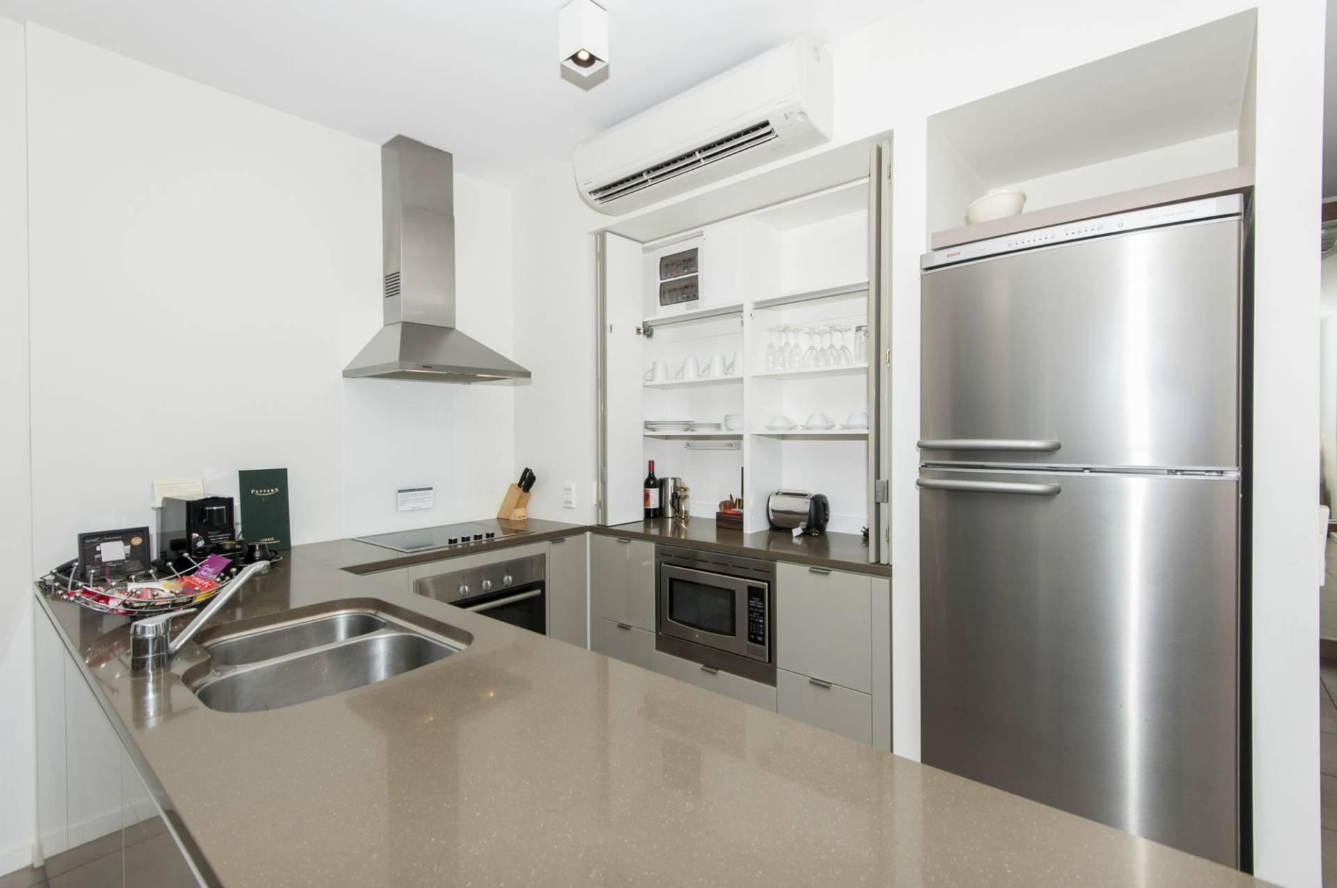 A dual key configuration that provides both flexibility and maximum returns. One side is a fully self contained 1 bedroom apartment with a second dayroom, full sized kitchen and entertaining patio and the other side is an ensuited studio apartment with a spa and private patio accessing the pool side as well.