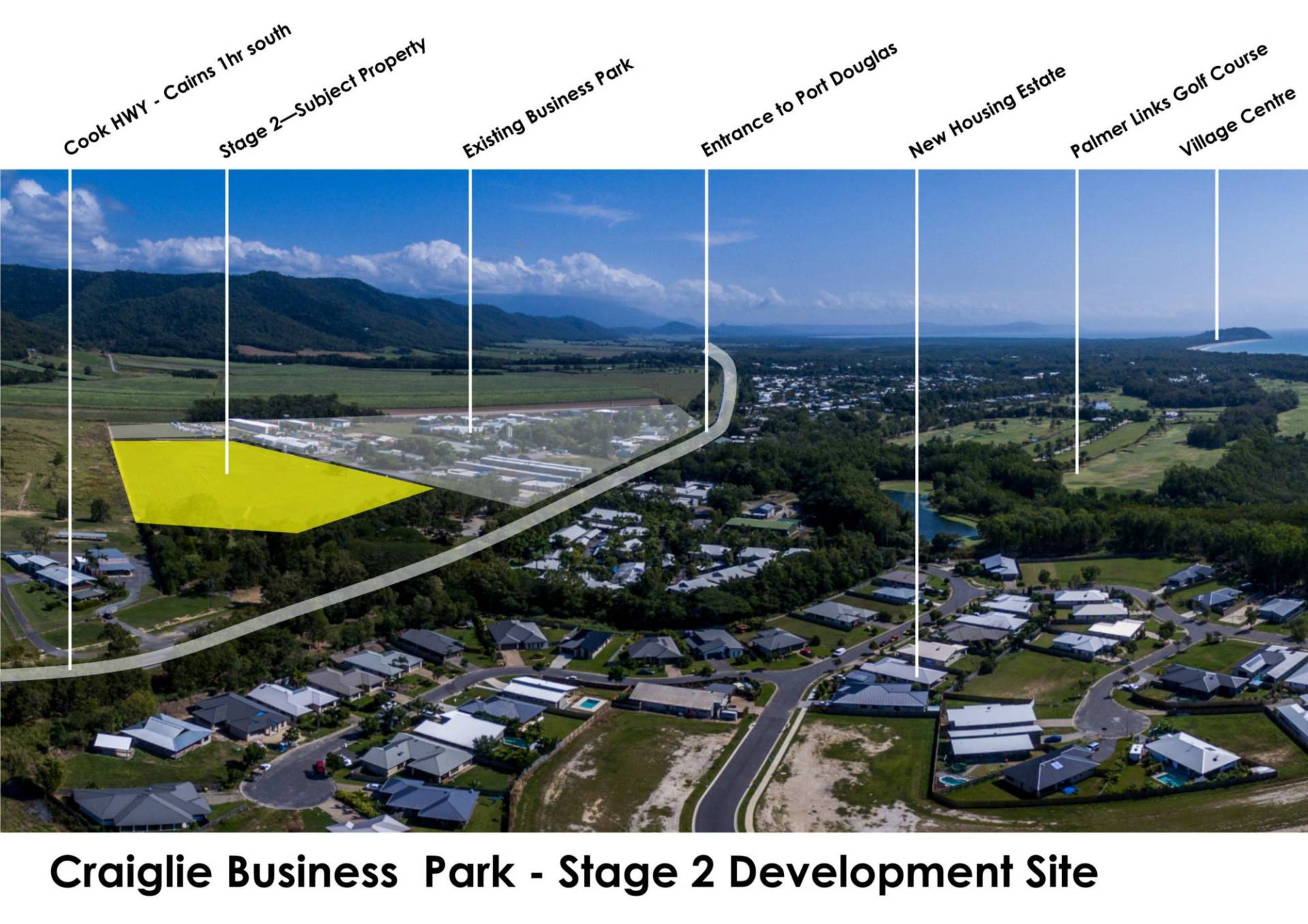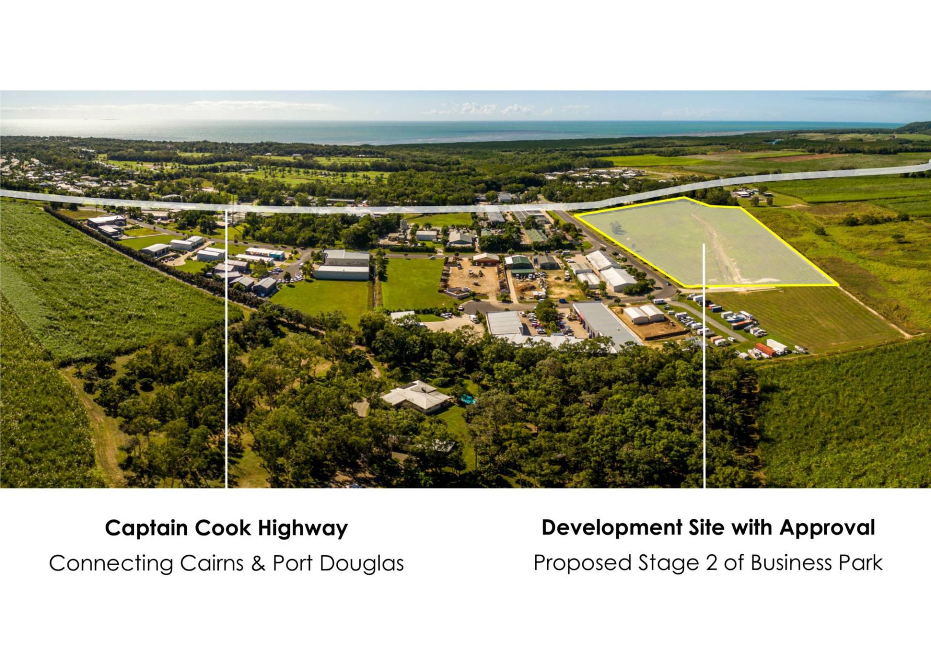 Accessed directly from the Captain Cook Highway at the entrance to Port Douglas. Stage 2 completes the industrial/business sub-division of the estate.