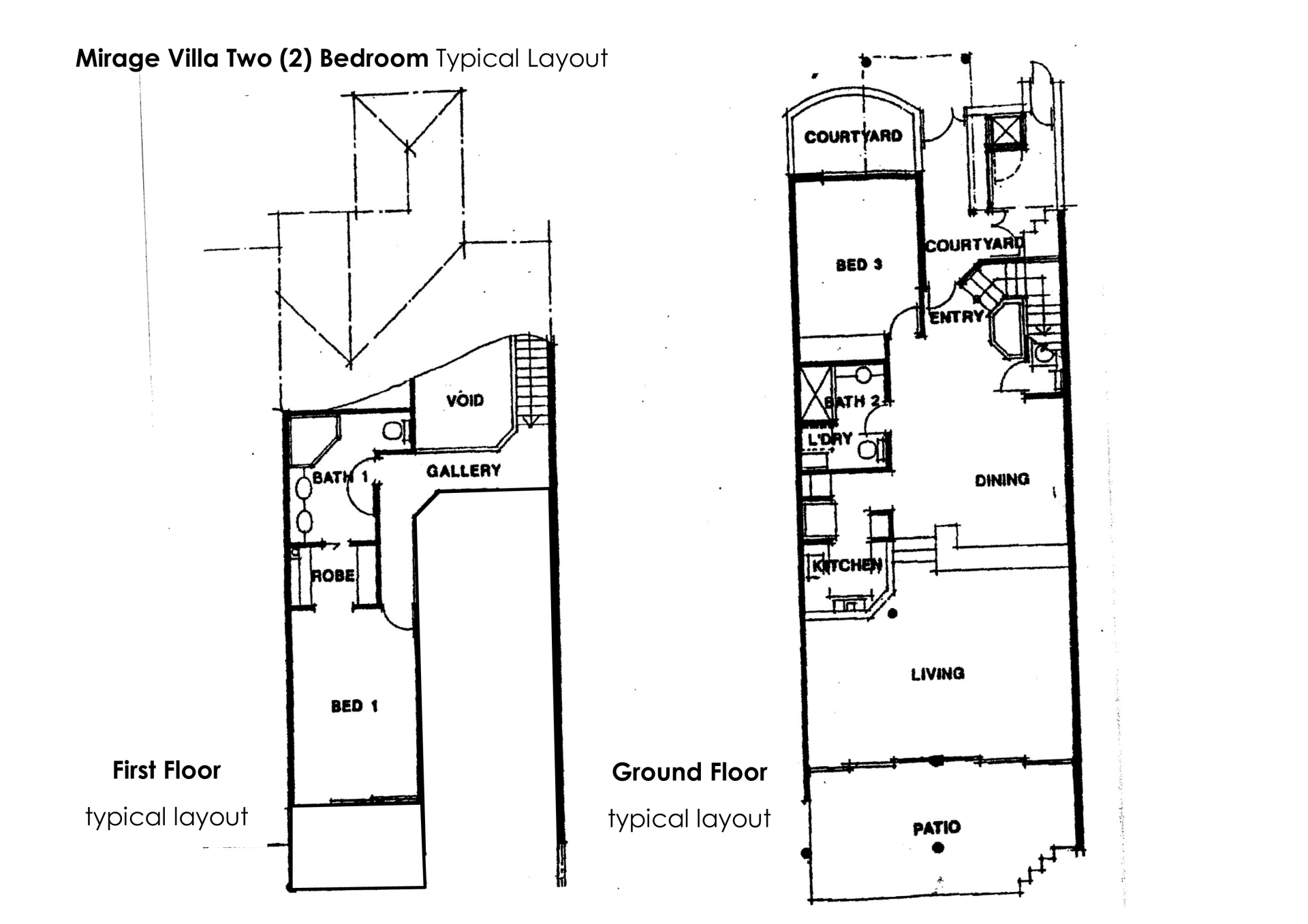 This two bedroom villa is east facing and enjoys a very rare feature being one of only two in the select group. Unlike most other two bedroom Mirage villas, being in a group of only two allows the addition of side windows to the dining area and therefore provides loads of natural light and a garden outlook. It also means you have only one immediate neighbour.