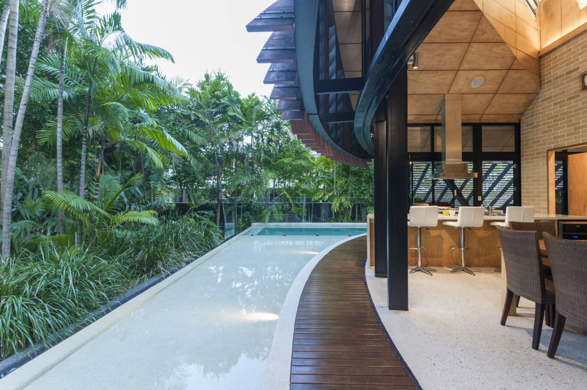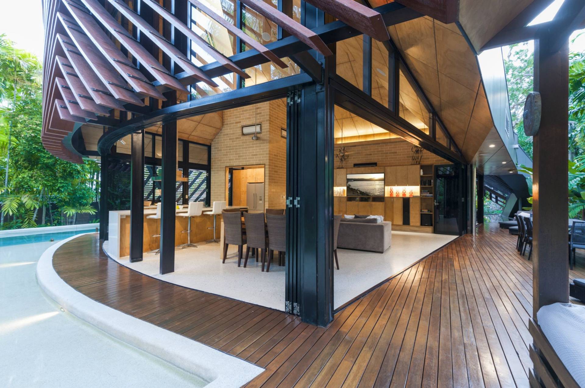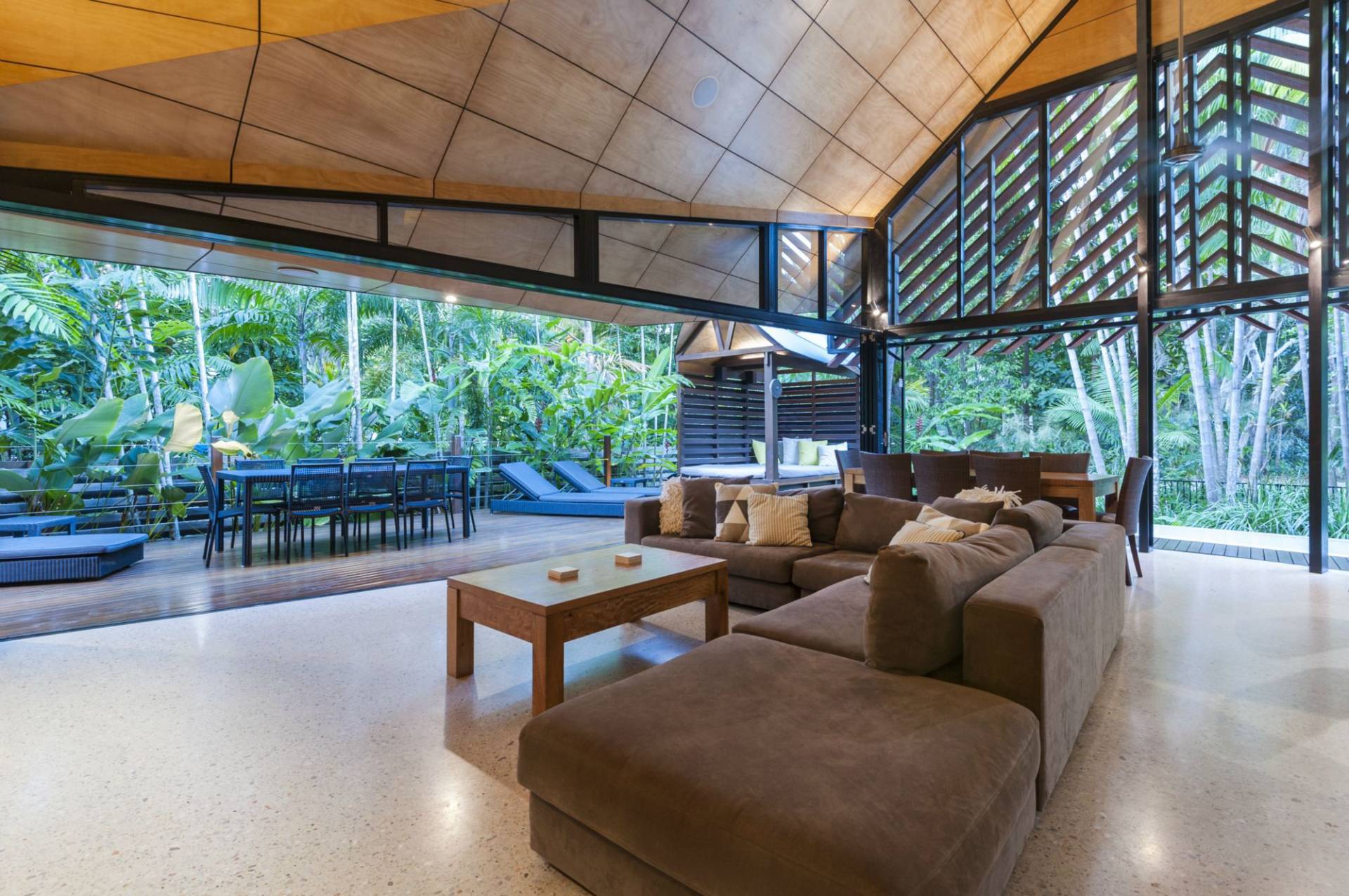 Add polished concrete flooring, soaring ceilings, walls of open folding glass panels, expansive timber decks, lush tropical gardens, open plan entertaining and living and you cannot help to impressed by the superb liveability and tropical feel of this Port Douglas retreat.