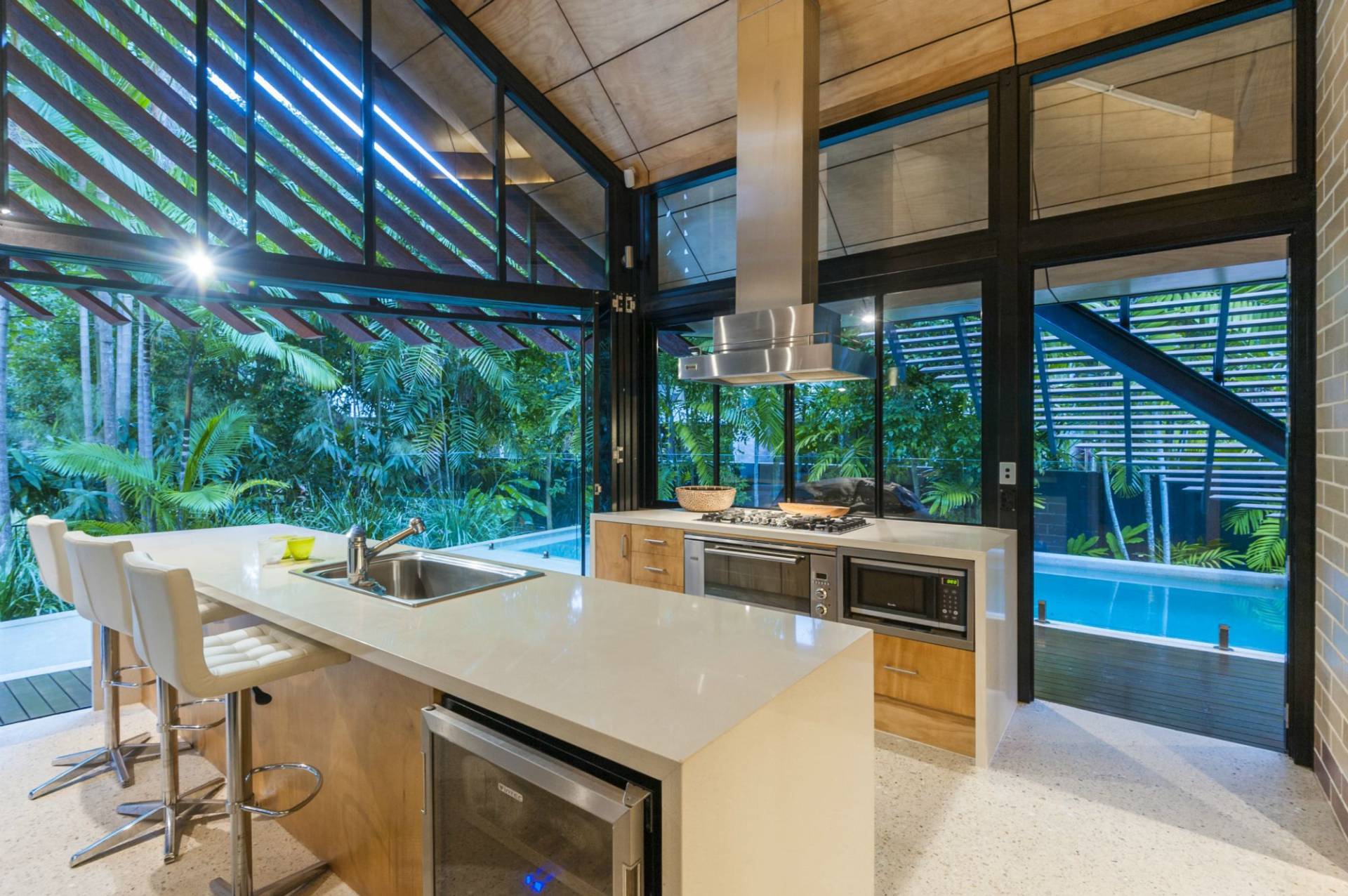 This home perfectly blends the outdoors with the indoors whilst still providing the option to be able to close the home and enjoy air-conditioning comfort throughout.