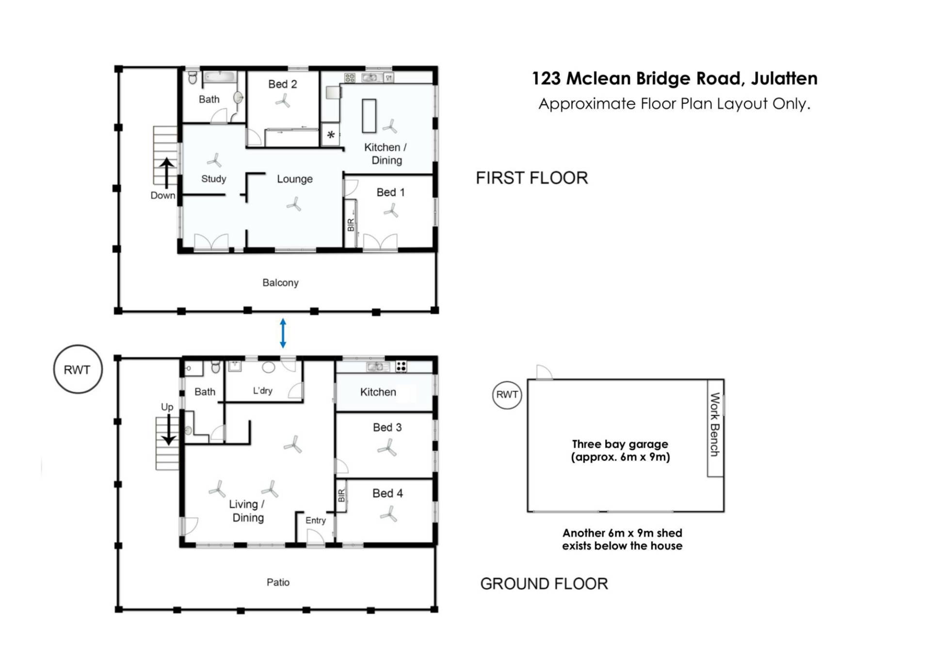 * Sweeping verandah upstairs with rural views and patio downstairs