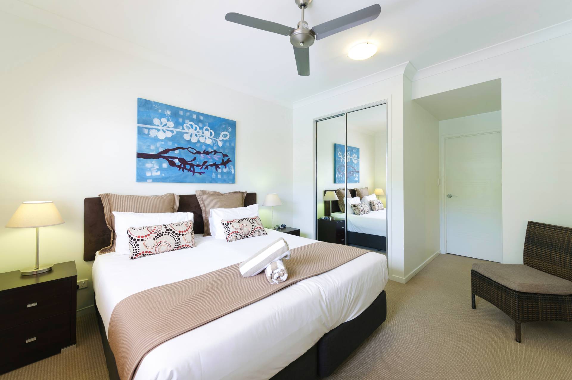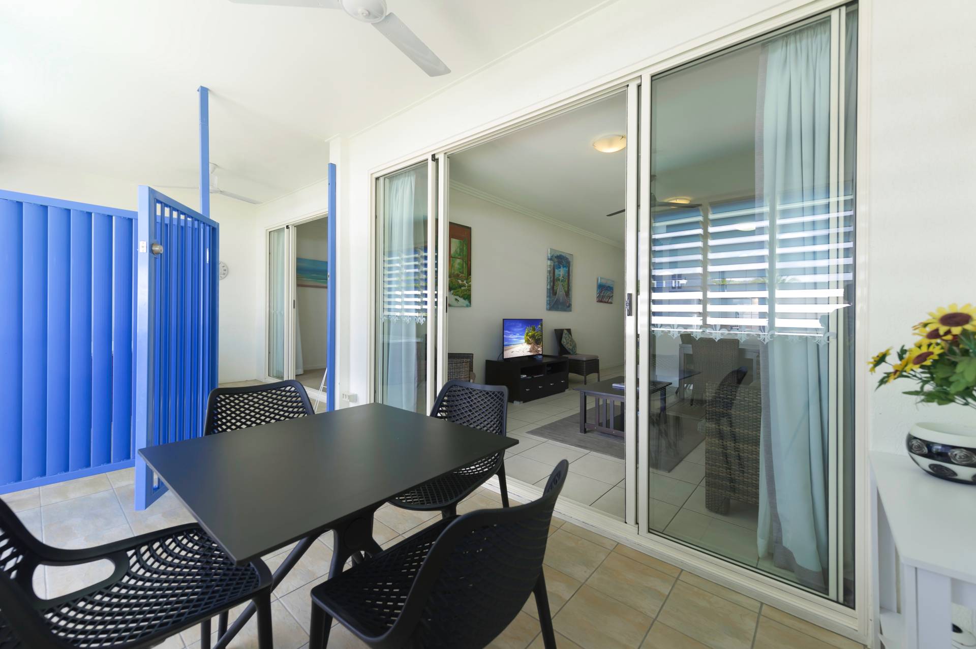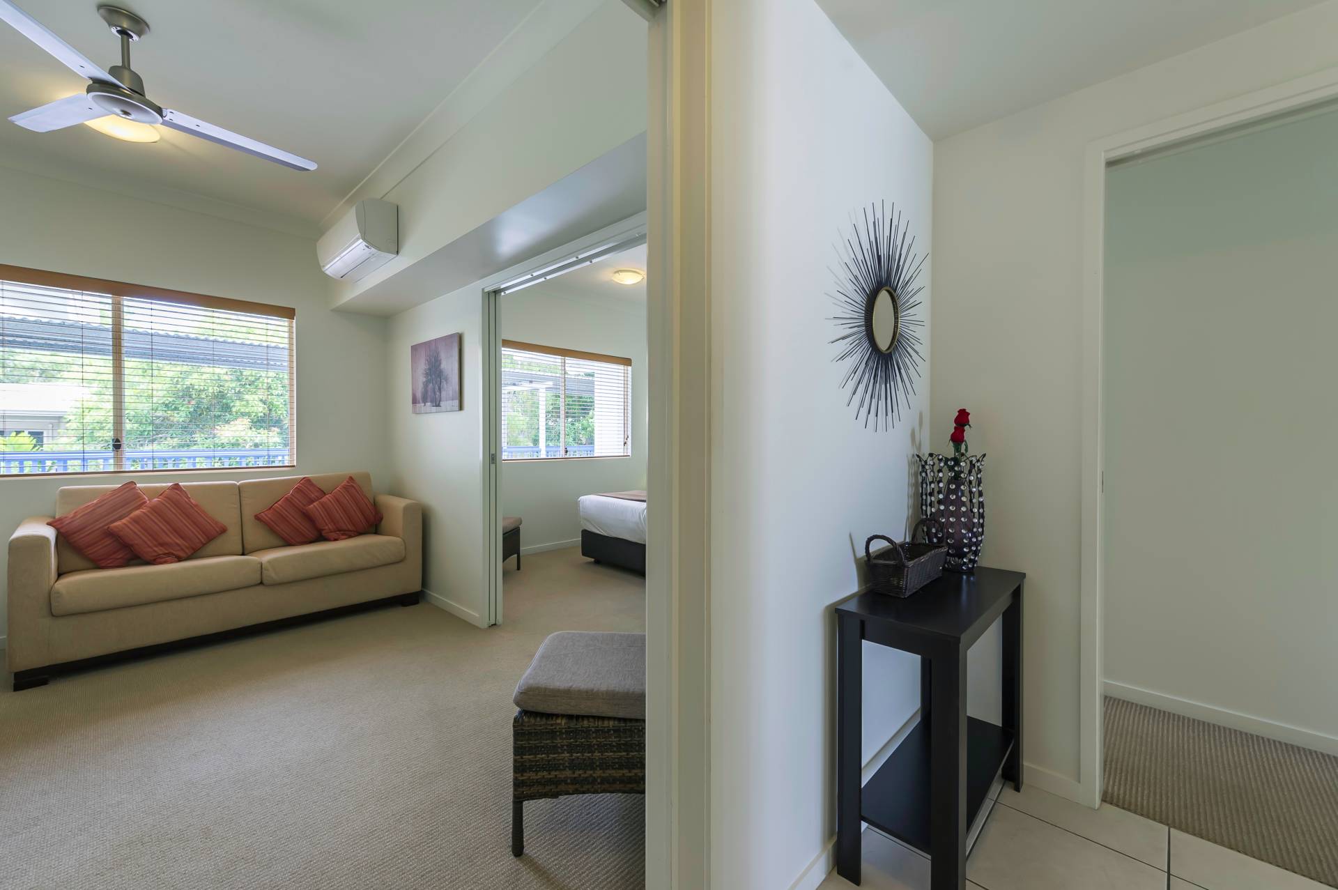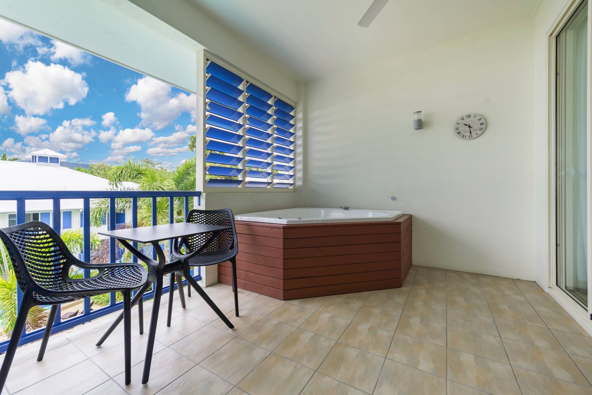 The property is of course a dual key layout, comprising a communal lobby/entrance, large fully furnished two bedroom apartment, and a more compact one bedroom studio, complete with balcony spa. The balcony can be separated or opened to create a larger space if you have friends staying. Owners at Lagoons just love letting one half of the apartment while they enjoy a holiday in the other …it’s a great way to have someone else pay for your trip!