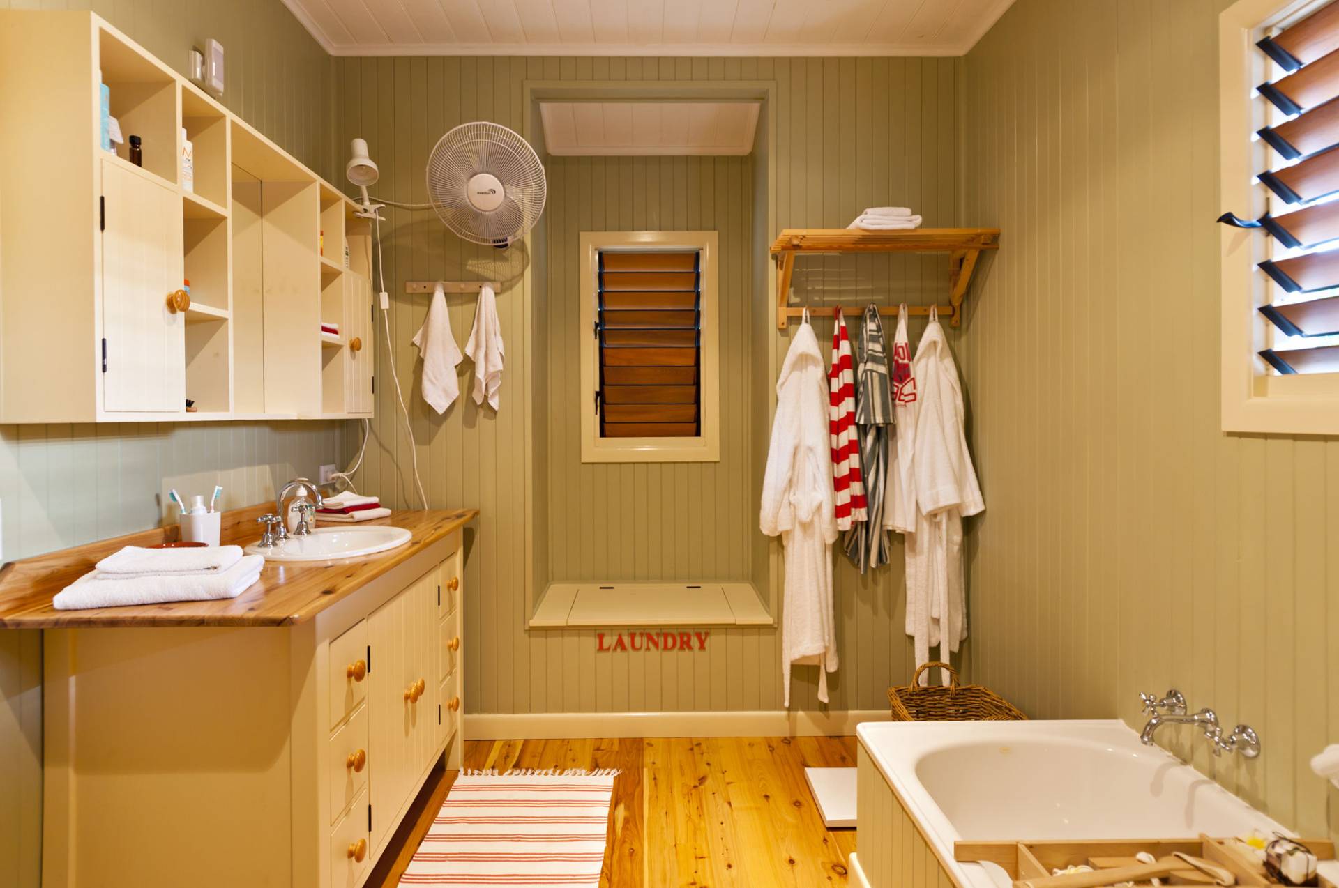 - Custom made solid timber cabinets & bench tops in kitchen, vanities & laundry