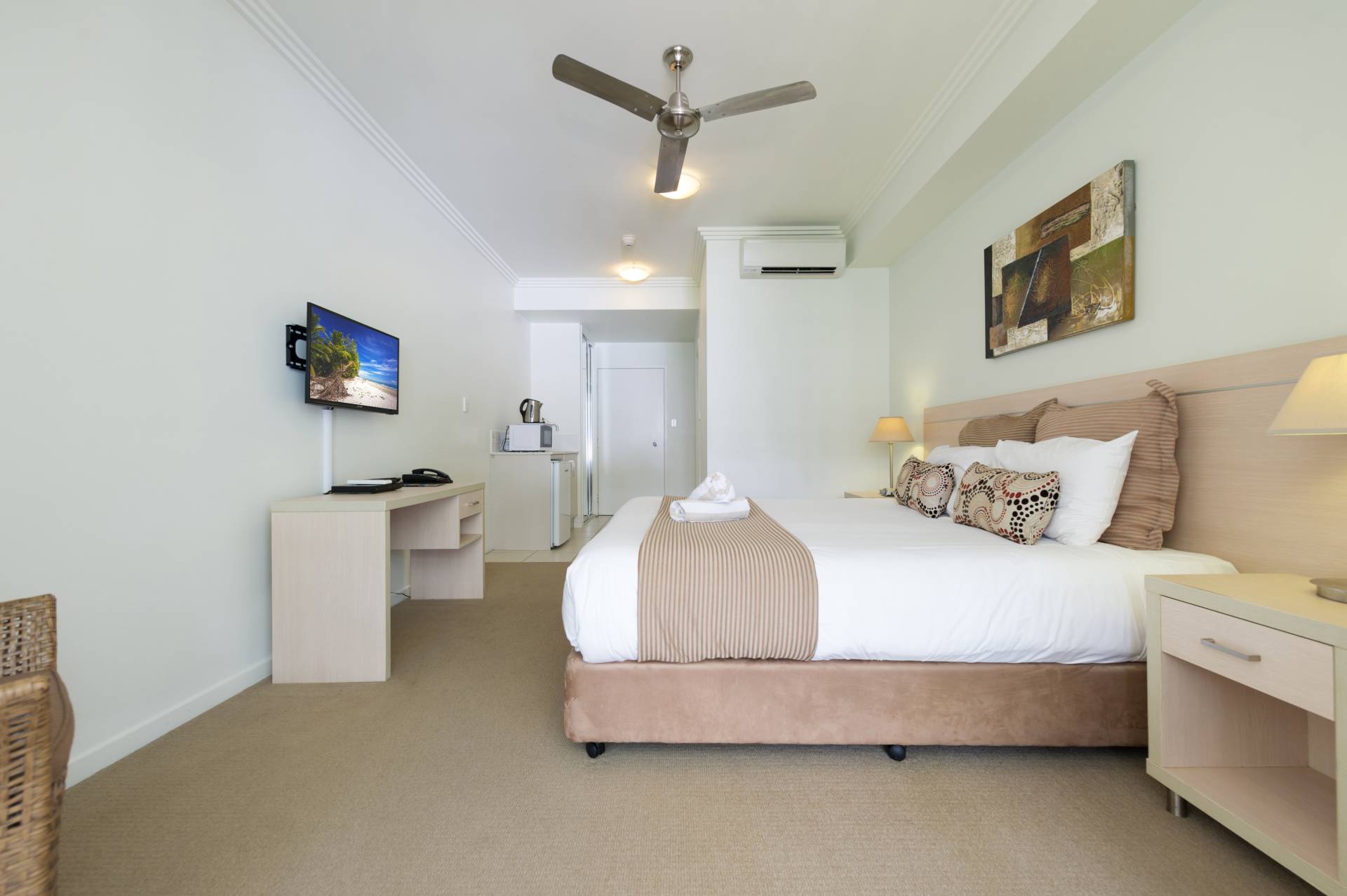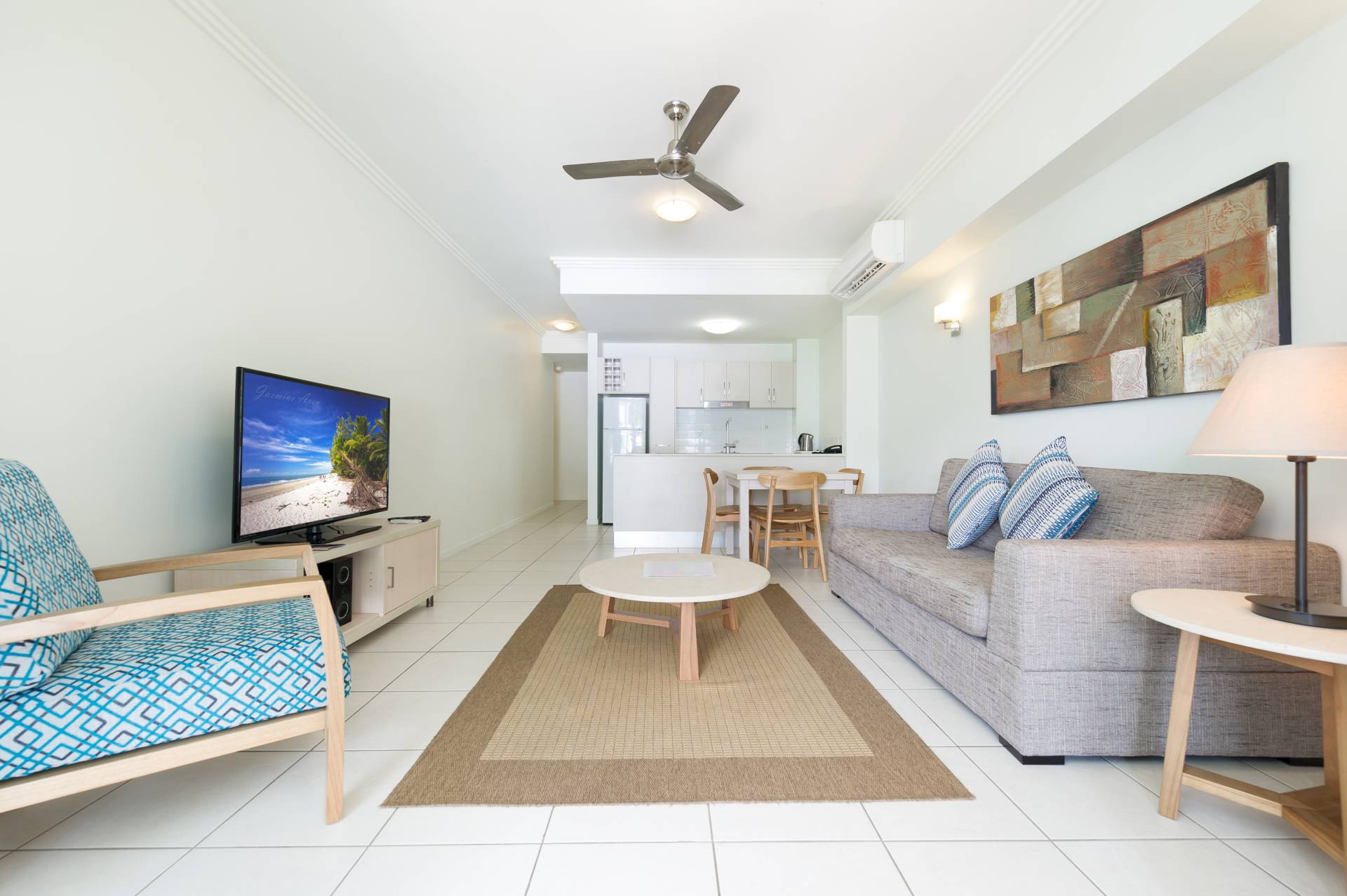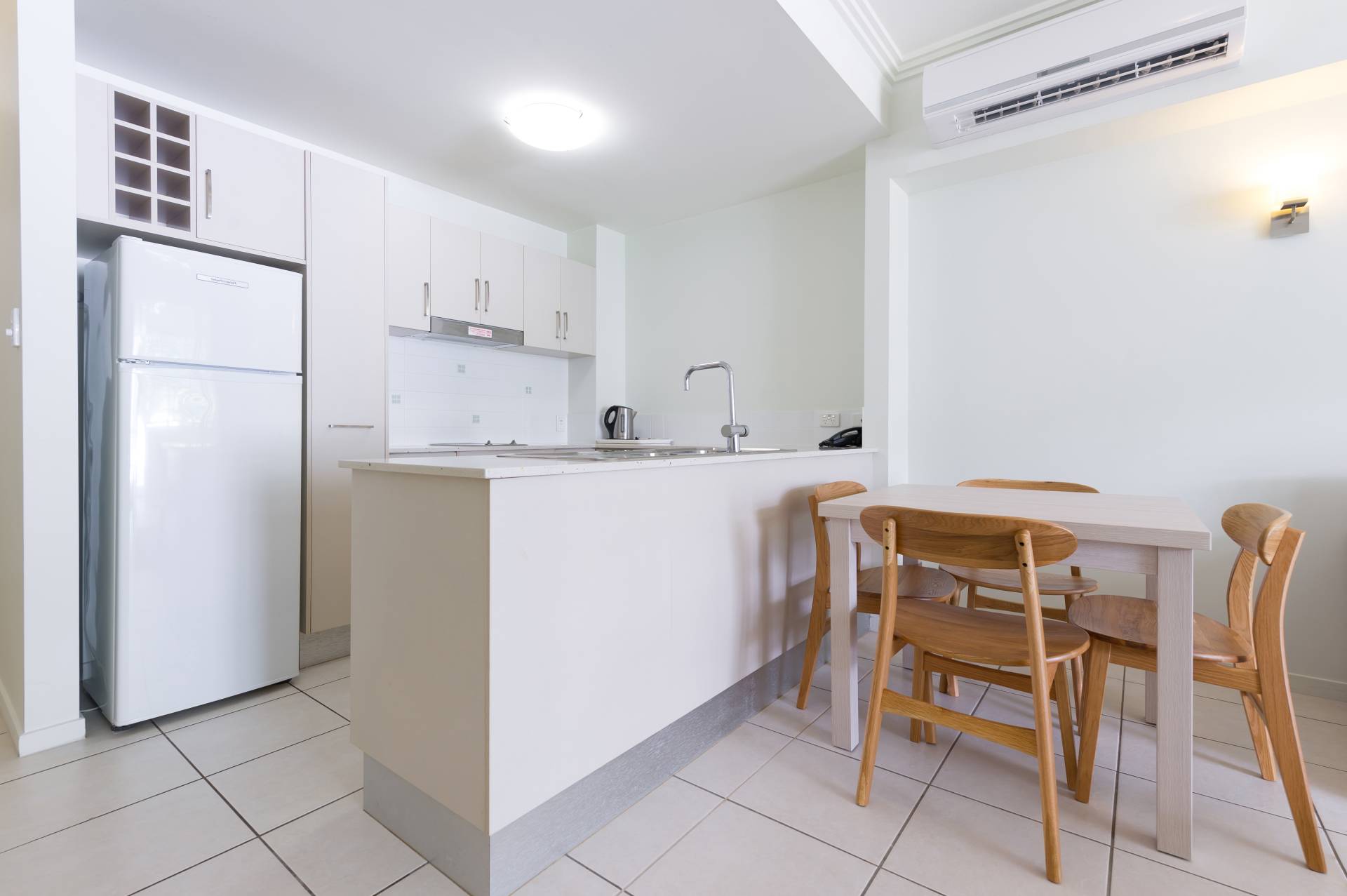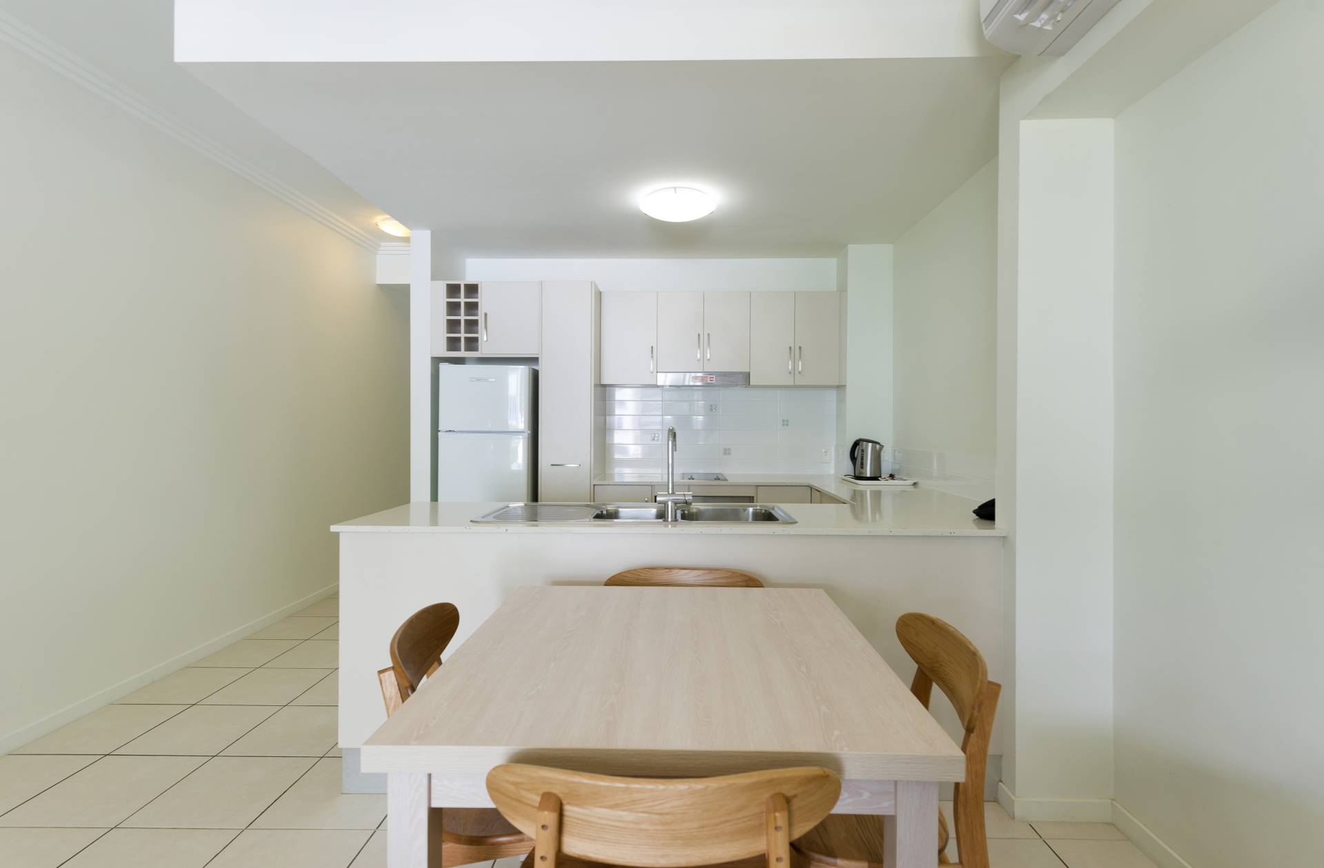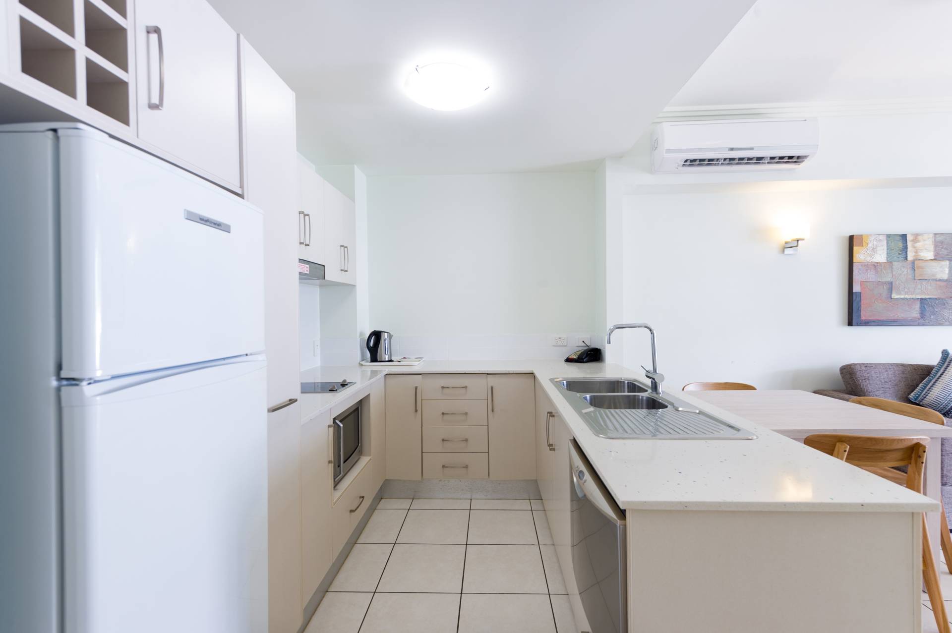 • Tiled living areas, carpeted bedrooms