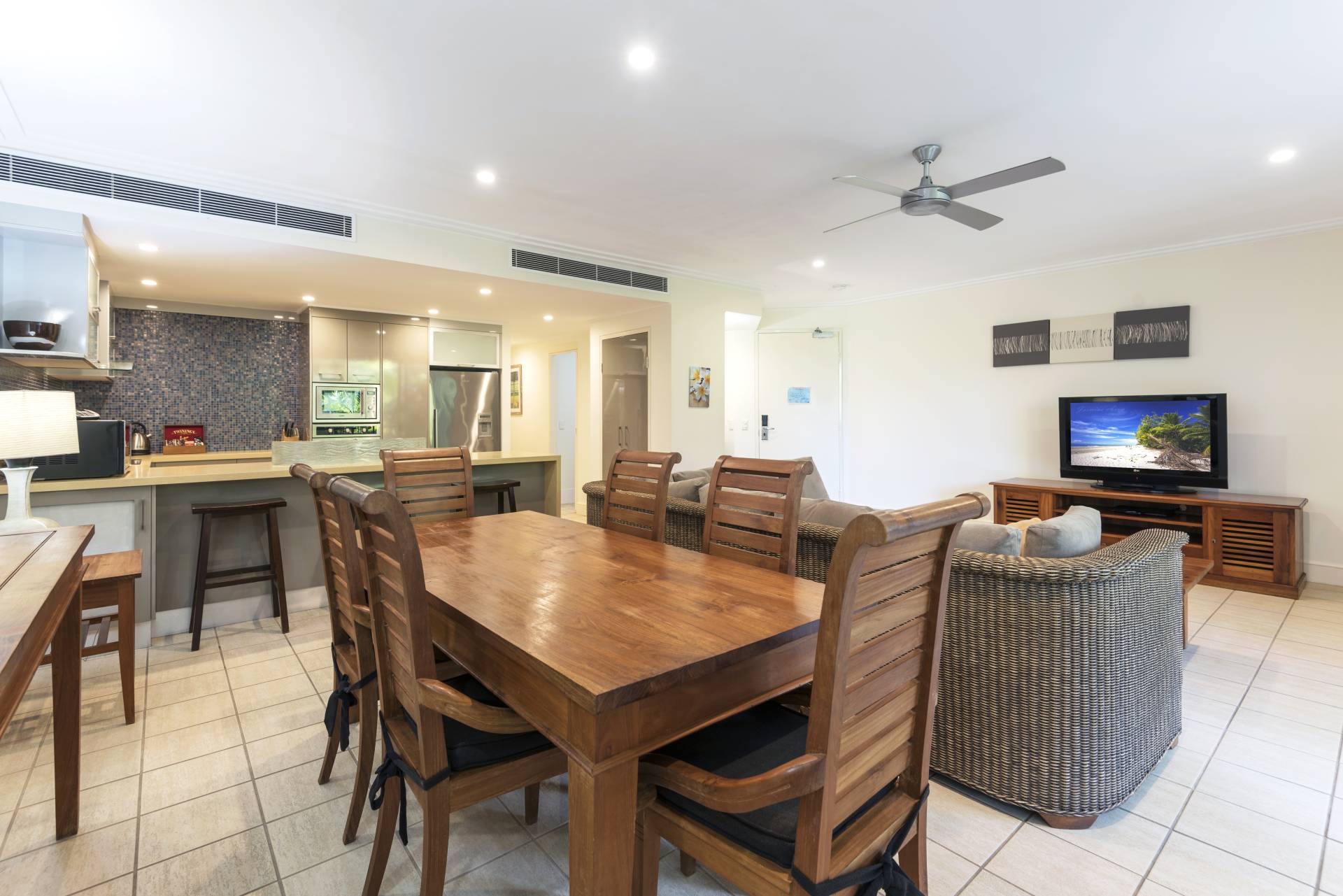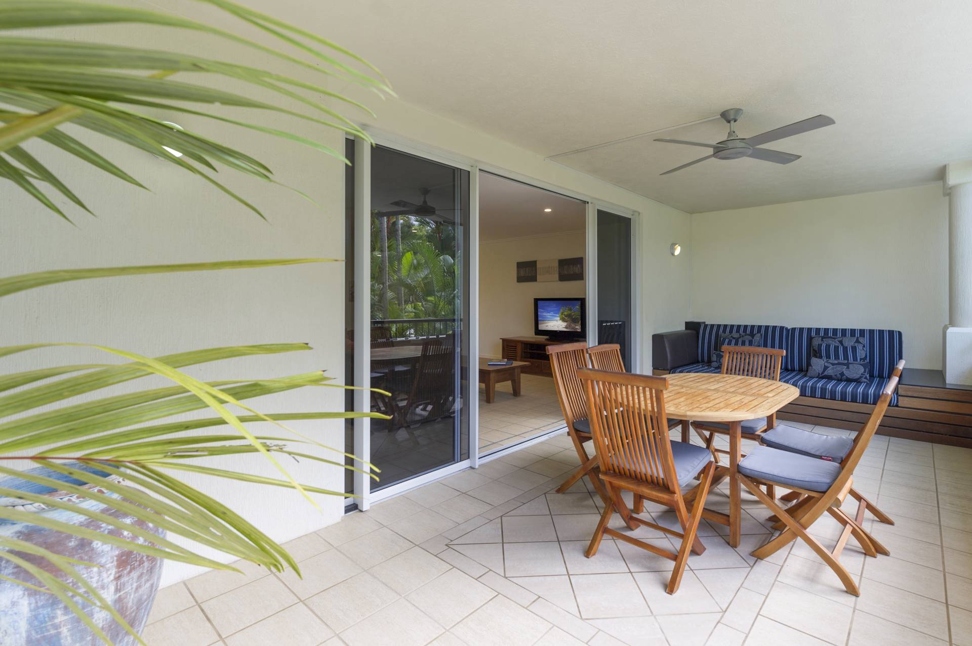 Situated perfectly on the top floor with an east facing tropical garden outlook. When there are Coral Sea waves lapping the beach - you can hear them from this apartment and you get to enjoy refreshing coastal breezes.