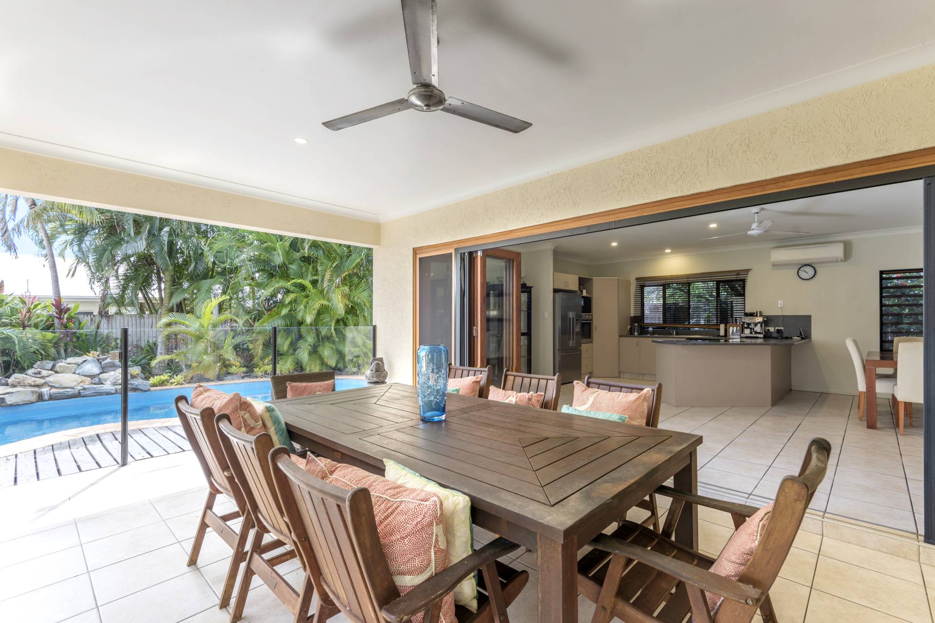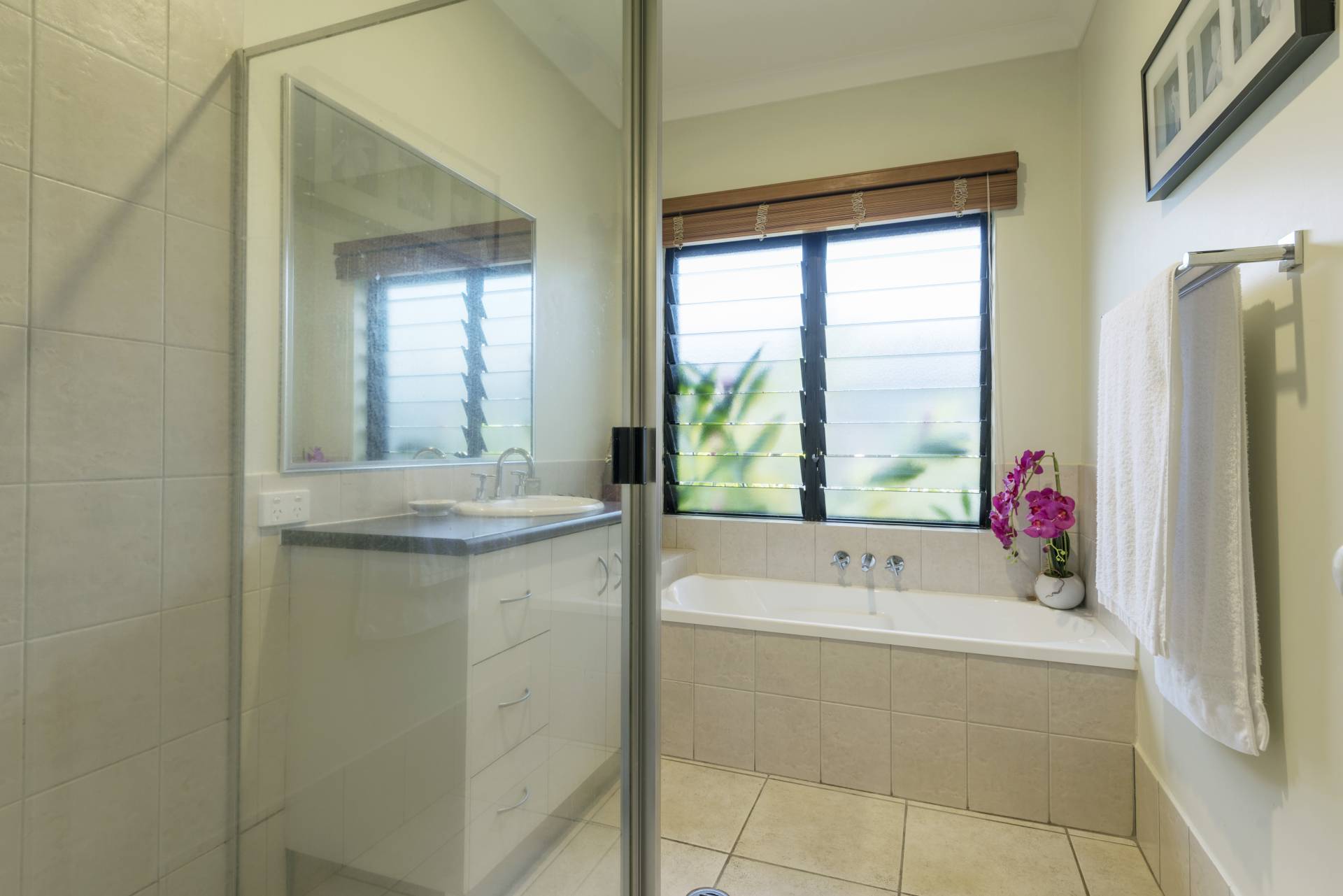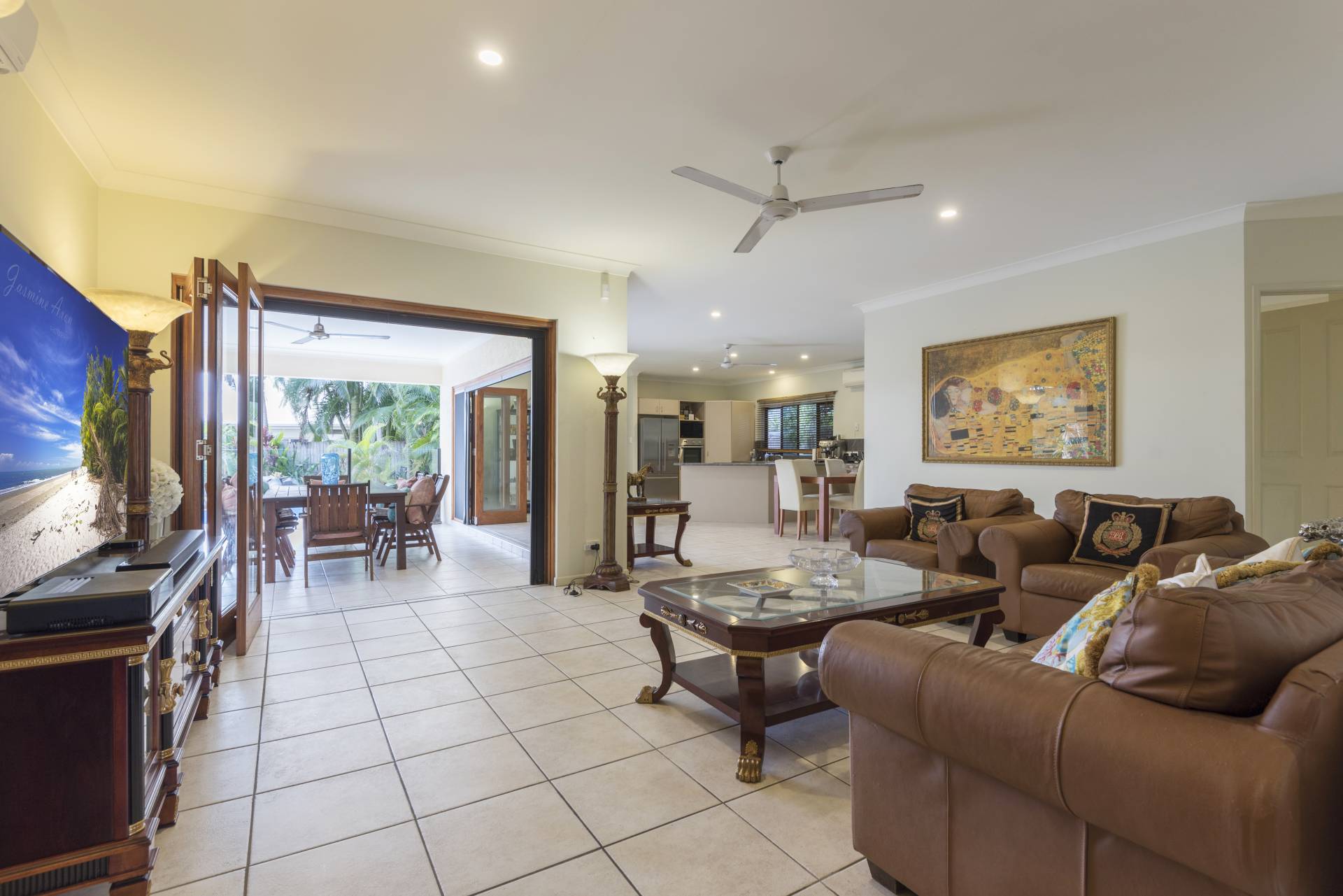 The open flow of the living areas, dining, kitchen and large alfresco entertaining area is excellent. Improved with top quality timber bi-fold doors and retractable insect screens – simply perfect for the tropics.
