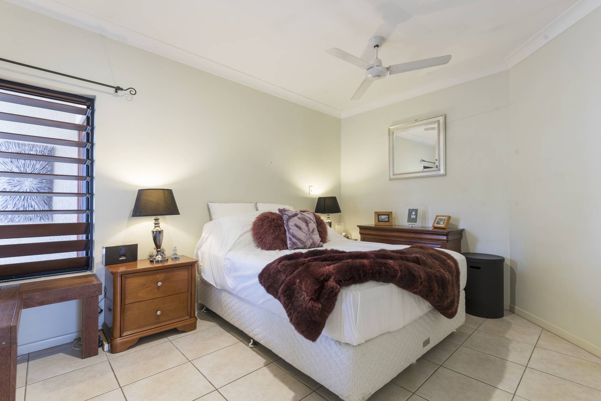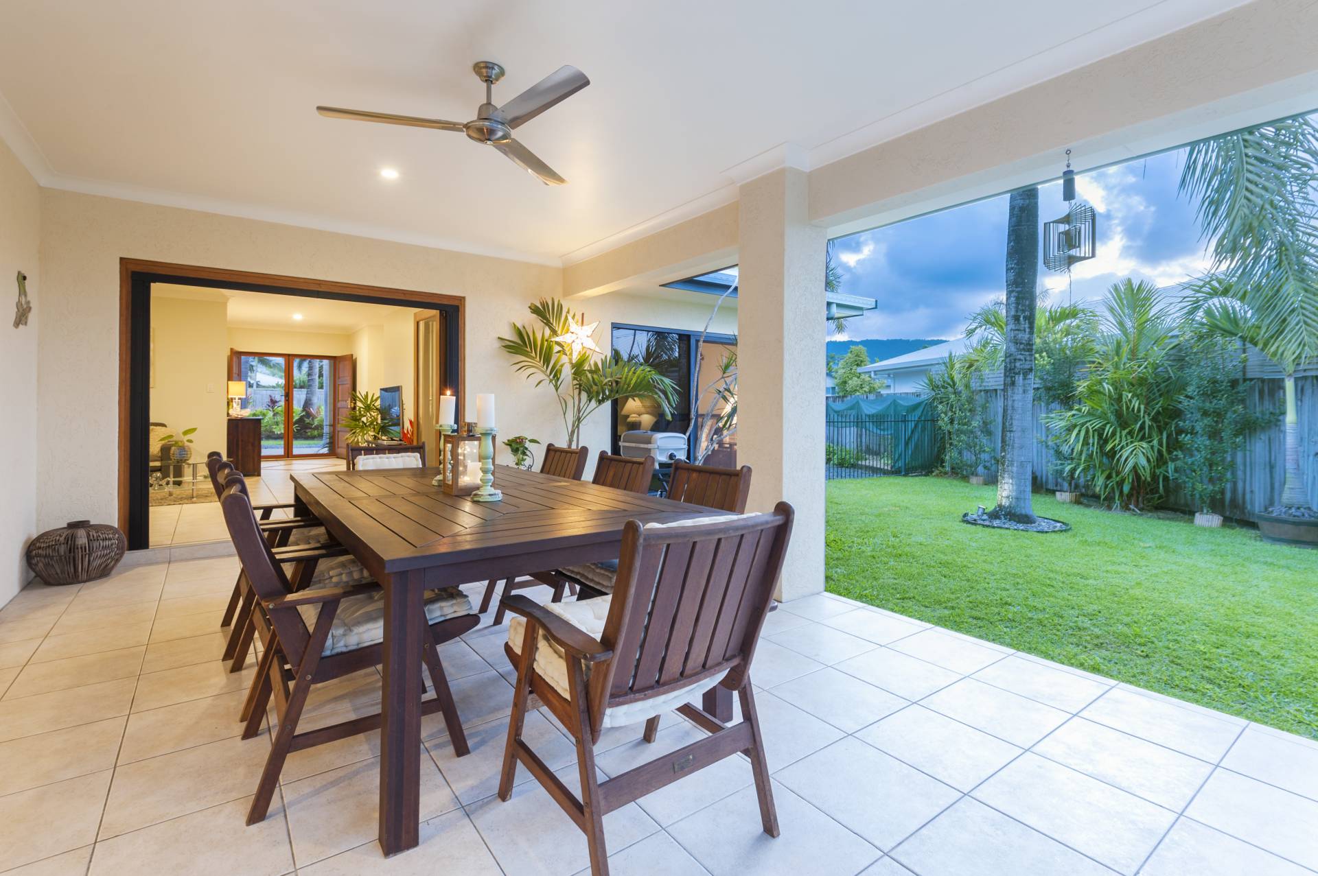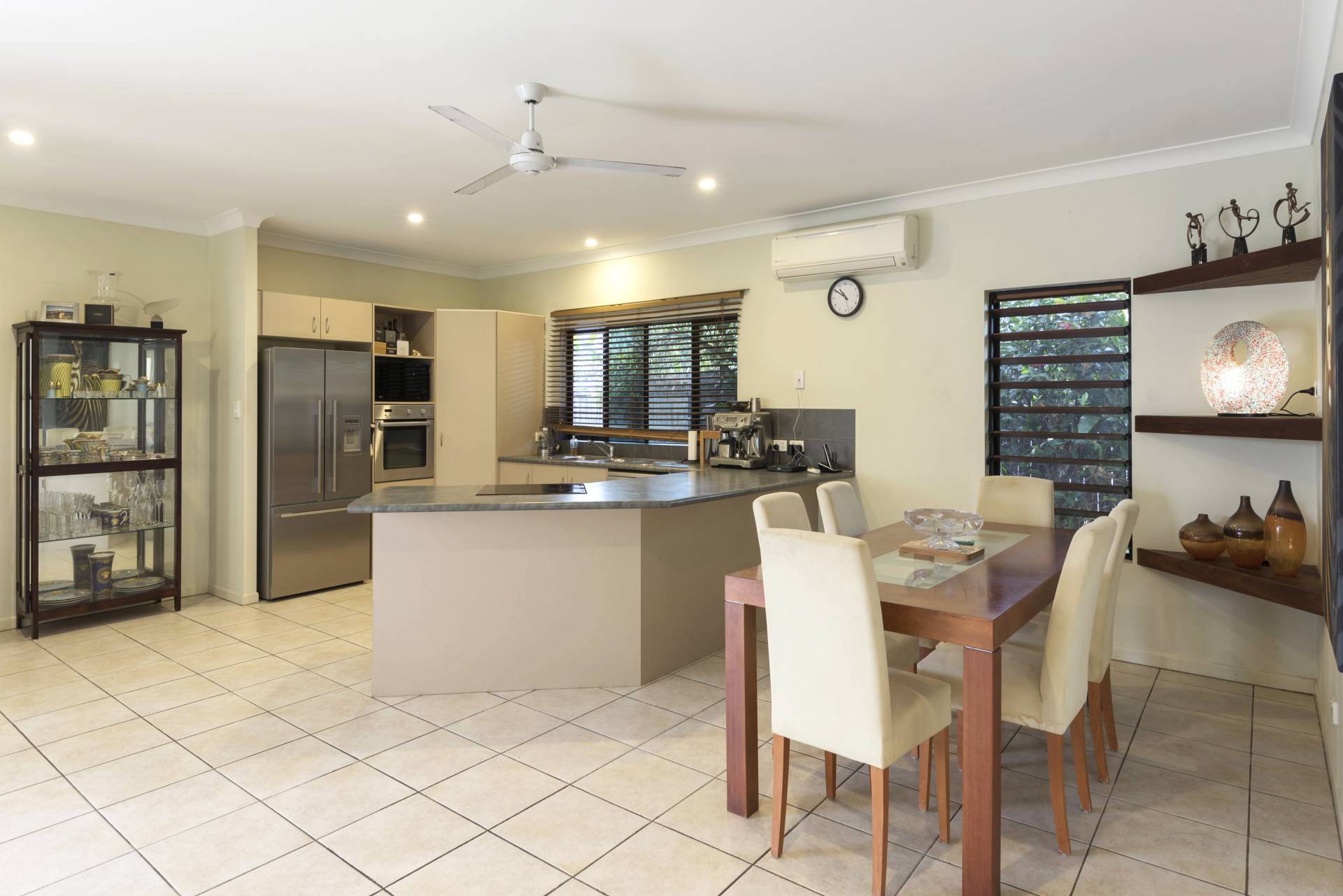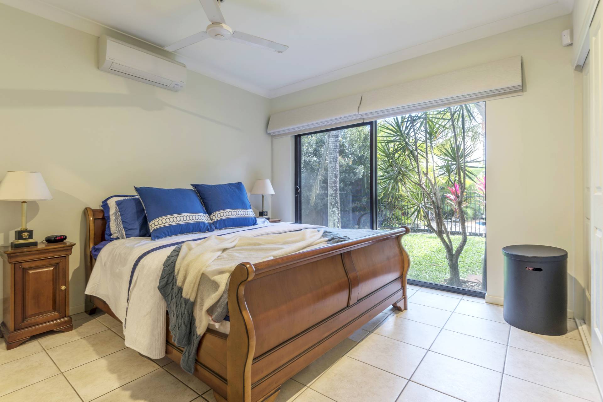 The open flow of the living areas, dining, kitchen and large alfresco entertaining area is excellent. Improved with top quality timber bi-fold doors and retractable insect screens – simply perfect for the tropics.