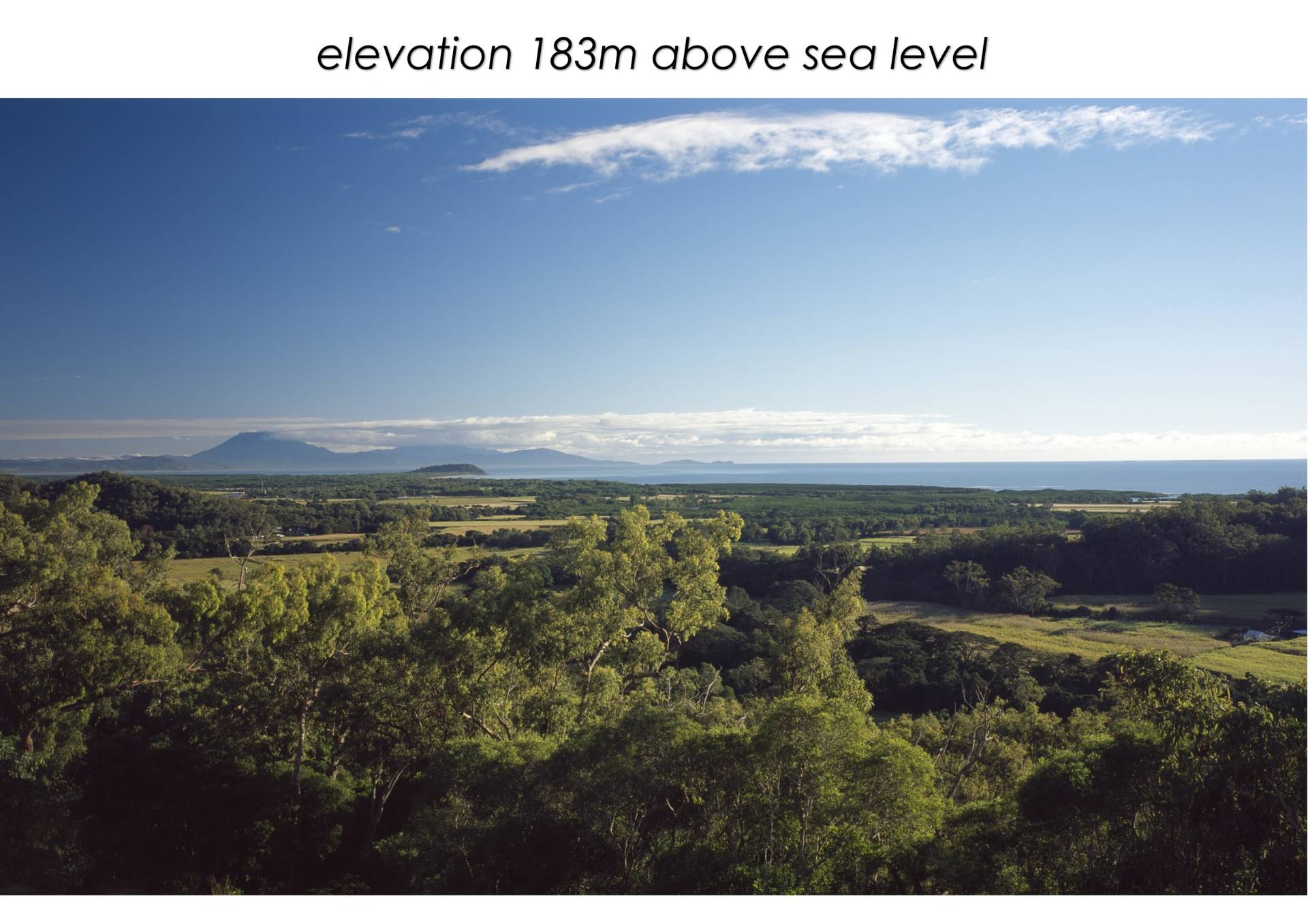Amazing views on offer - being a massive 183 metres elevation above sea level... providing the most expansive views to be found over the Coral Sea, Port Douglas, the northern coastal ranges, the mouth of the Mowbray River and the entire Mowbray valley floor.