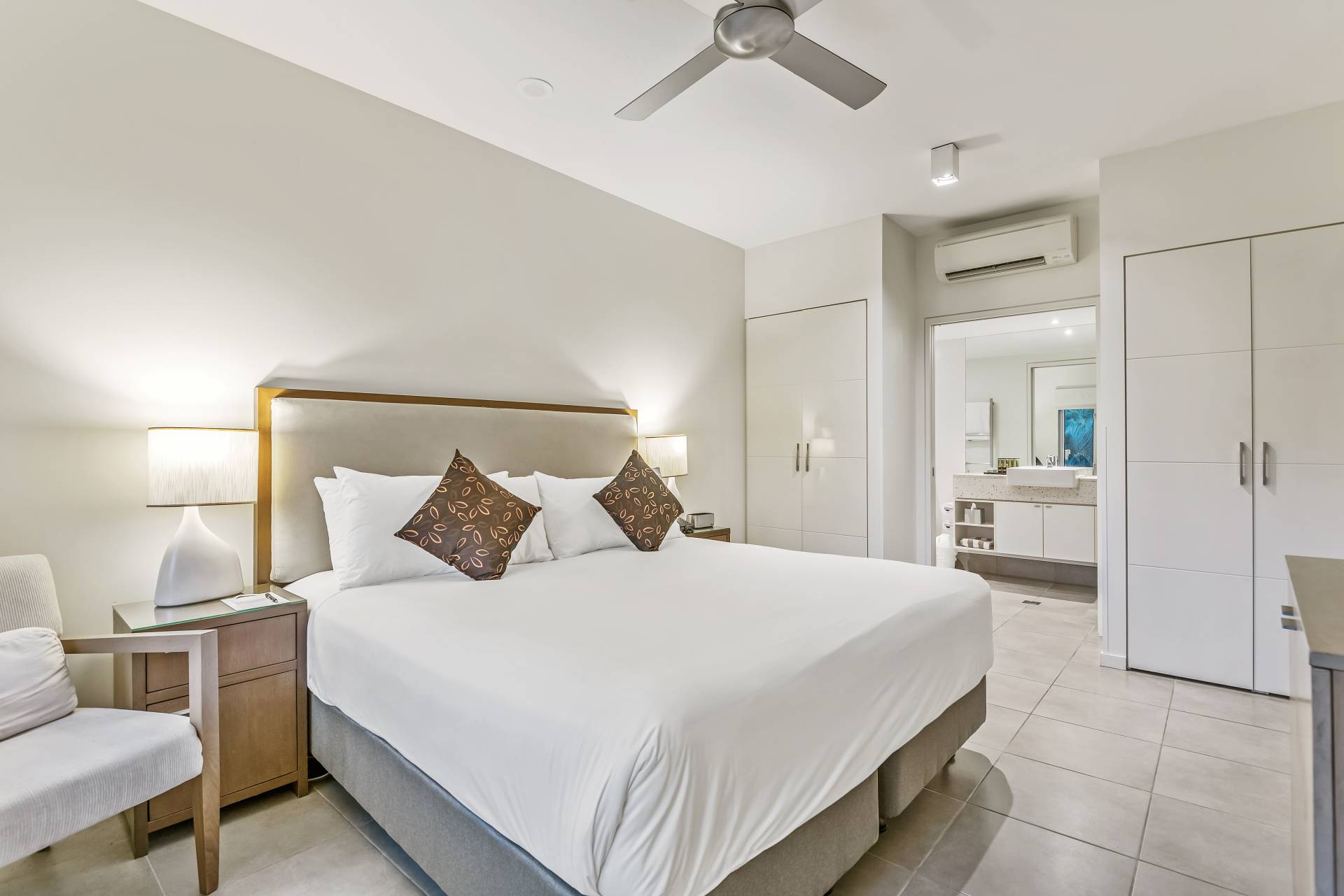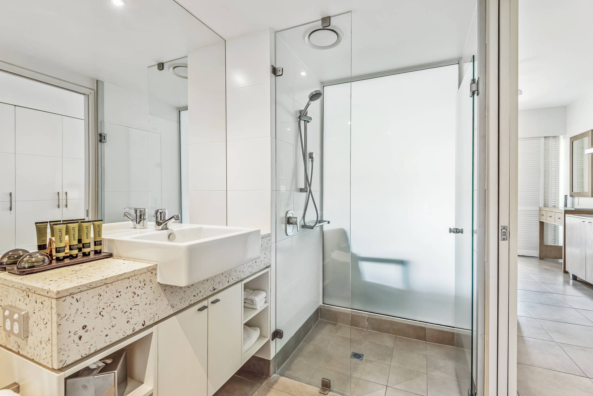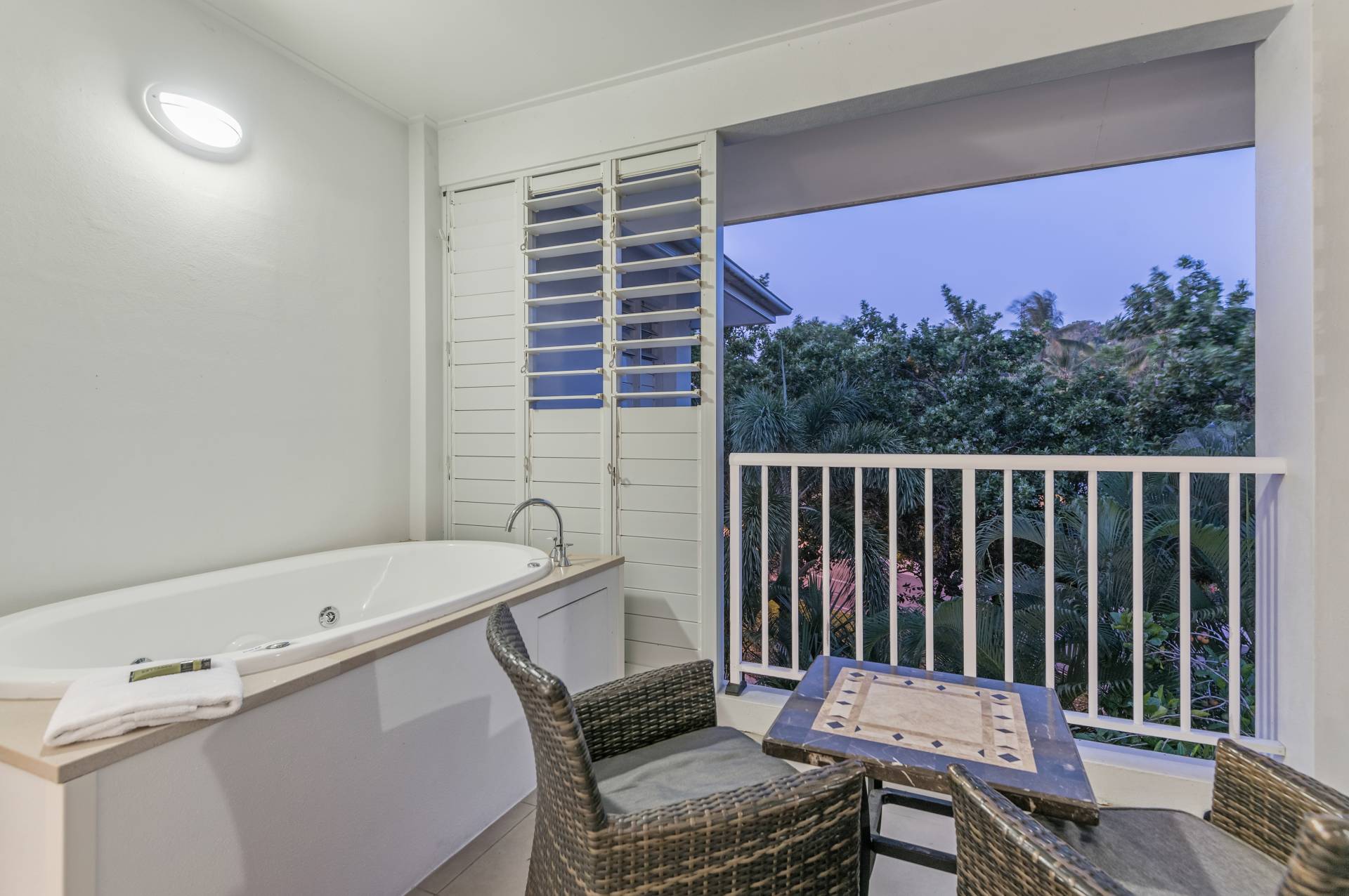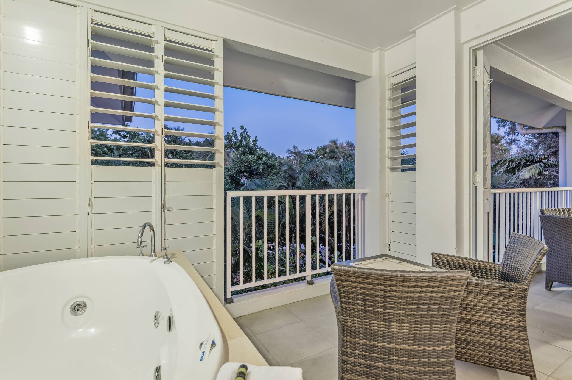 Being a dual key apartment means that there is a stunning Spa Suite on the adjacent side. This side of the apartment boasts a full king-size bedroom suite, ensuite and balcony with an outdoor spa and table and chairs offering a great treetop aspect.