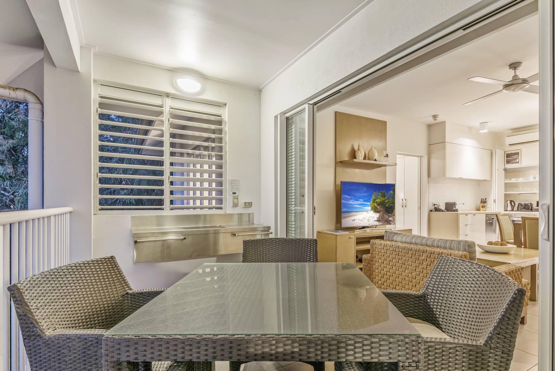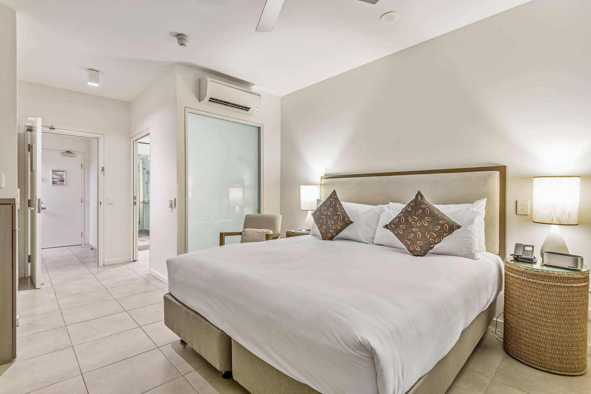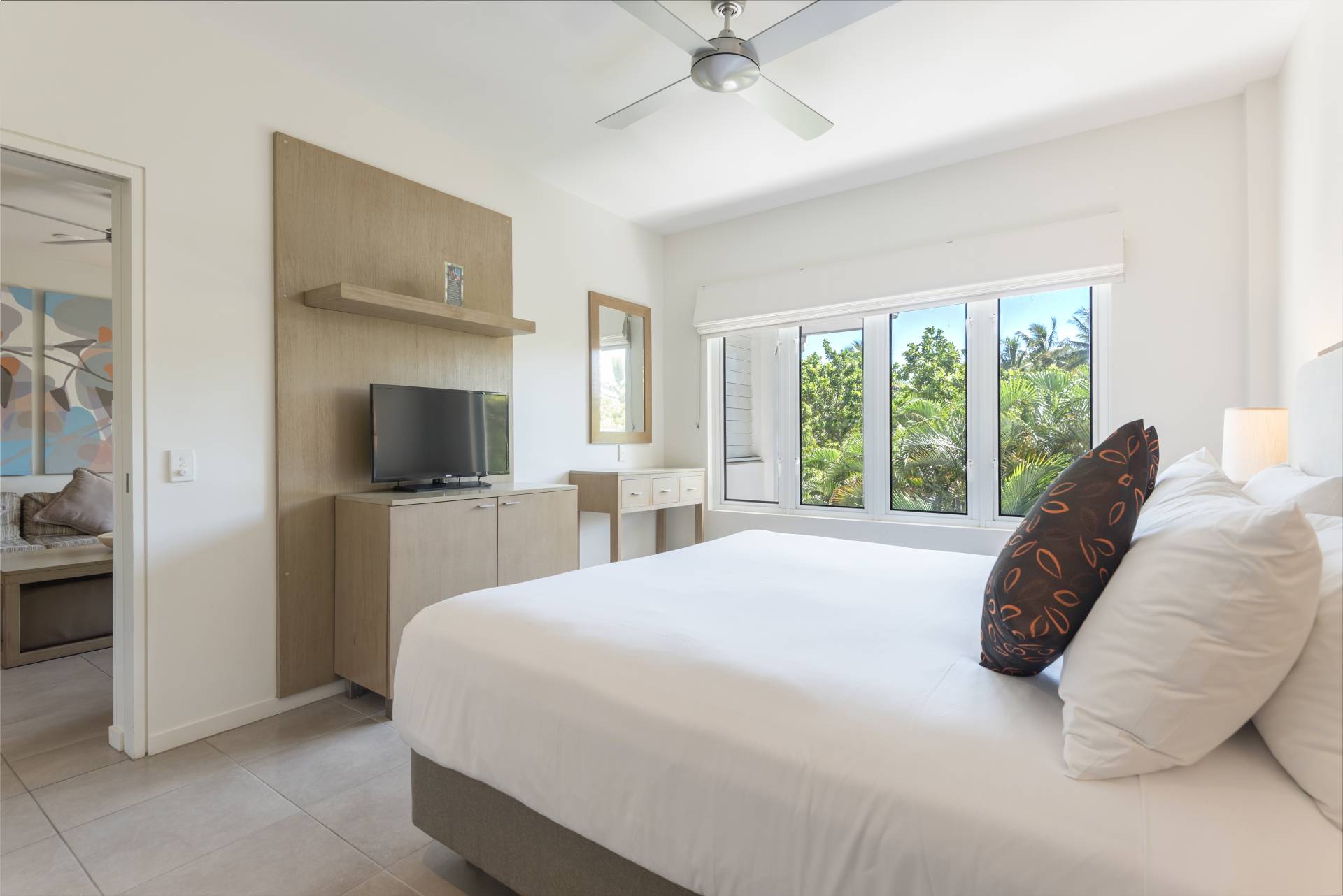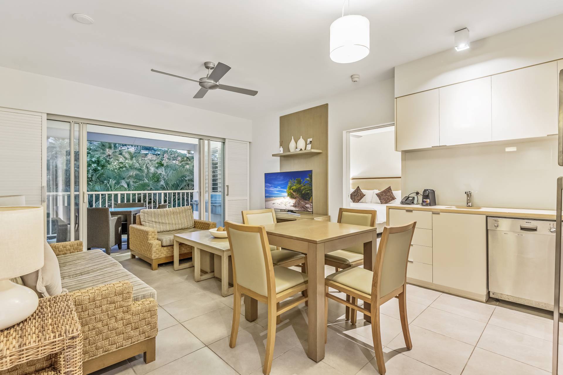 Being a dual key apartment means that there is a stunning Spa Suite on the adjacent side. This side of the apartment boasts a full king-size bedroom suite, ensuite and balcony with an outdoor spa and table and chairs offering a great treetop aspect.