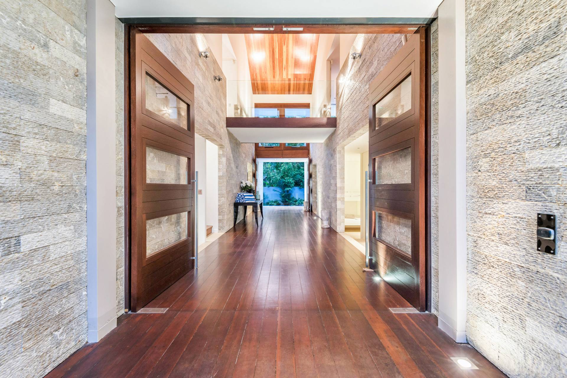 An architecturally acclaimed home that will impress from the moment you walk up to the enormous entry doors, doors that sweep inwards opening up to a three (3) metre wide breezeway extending the entire length of the home.