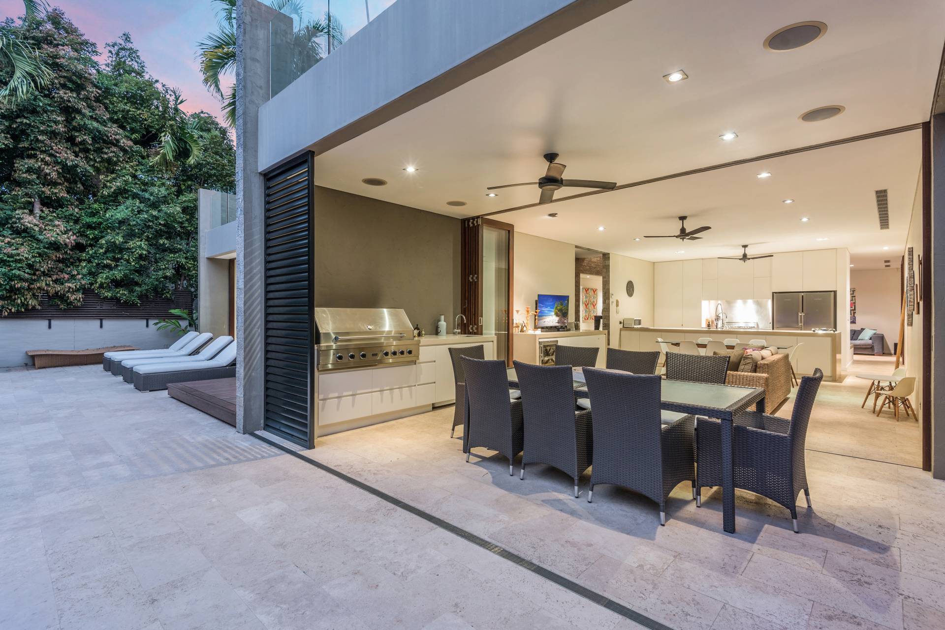 Flowing from the central breezeway are three (3) separate living, dining and relaxing areas, all spacious, inviting and hard to leave. Indoors and outdoors blend seamlessly with bi-folded timber and glass opening up to an outdoor kitchen and entertaining areas. The 12 metre long infinity pool forming the perfect centre-piece. To the side of the home you will find a purpose built steam room with outside shower and tropical low maintenance gardens.