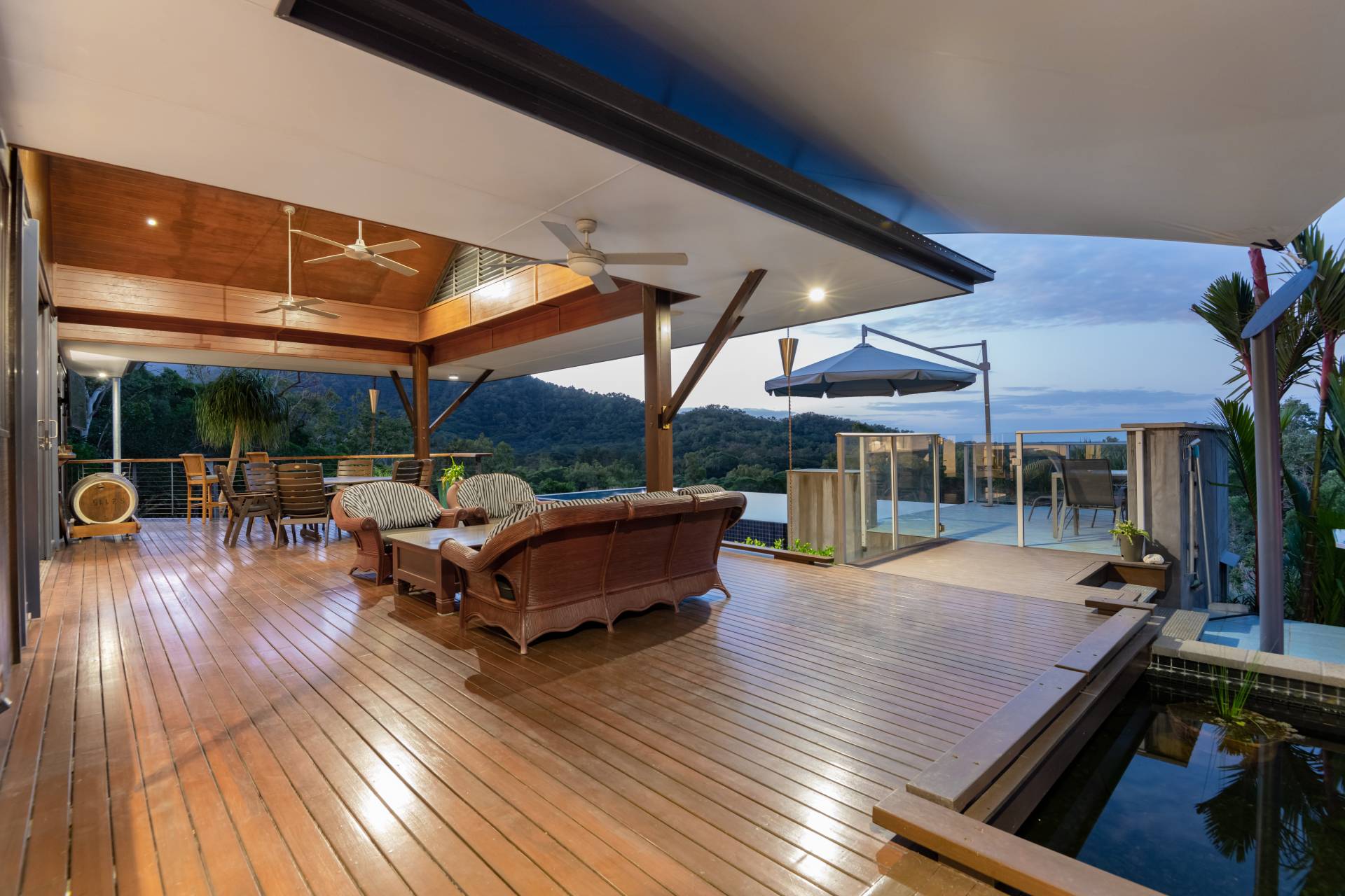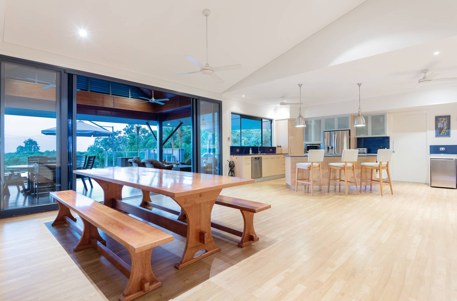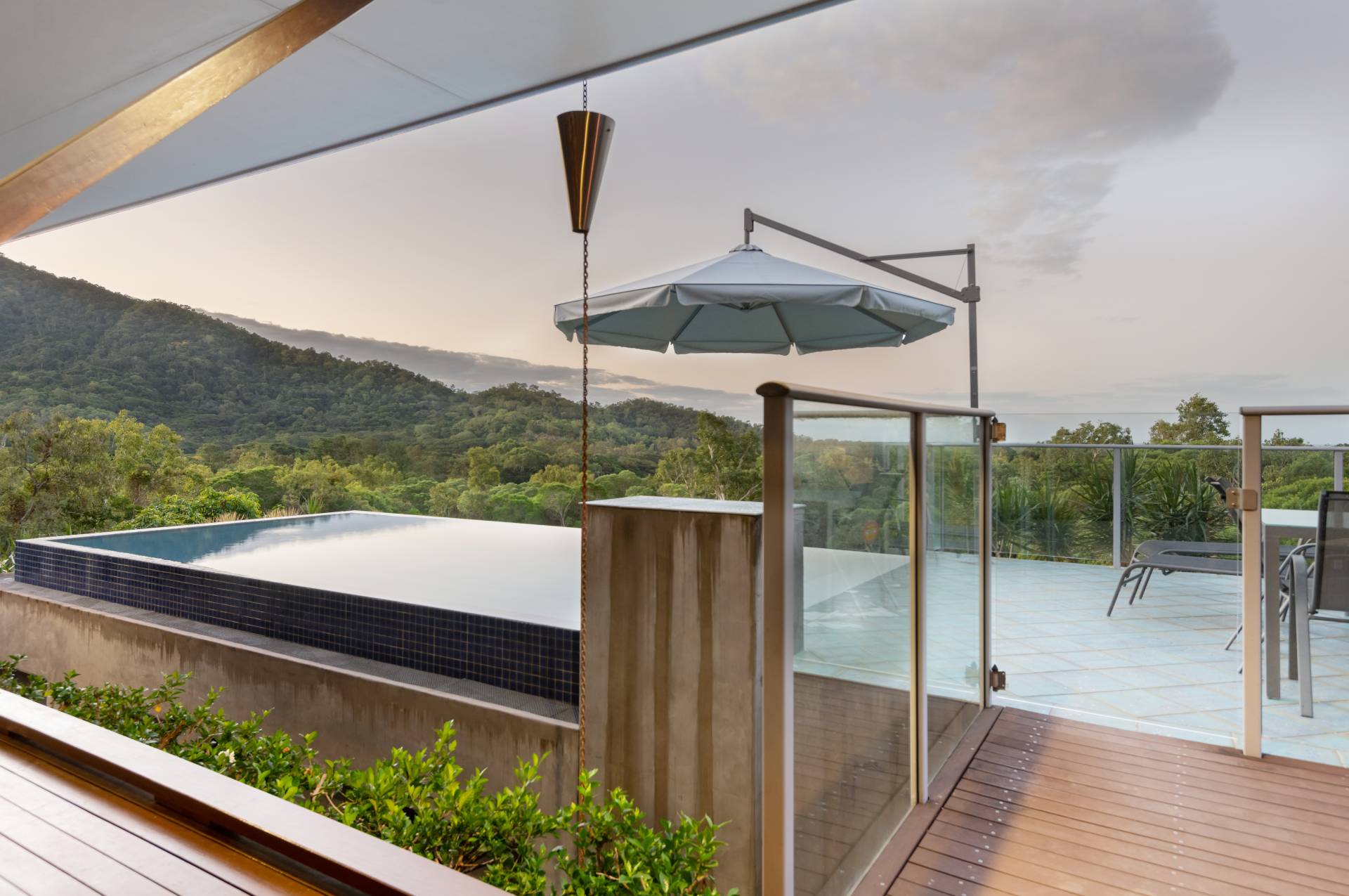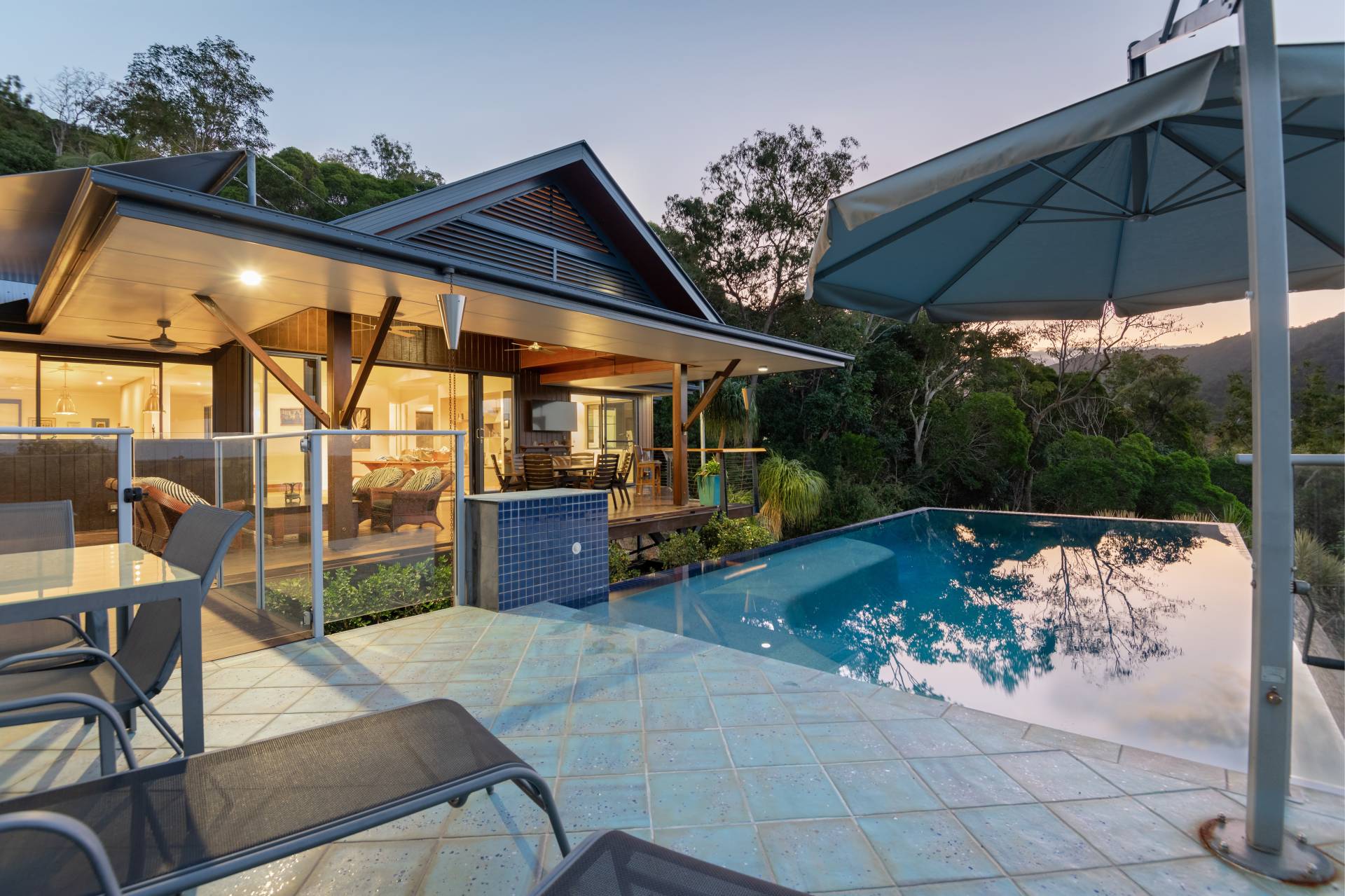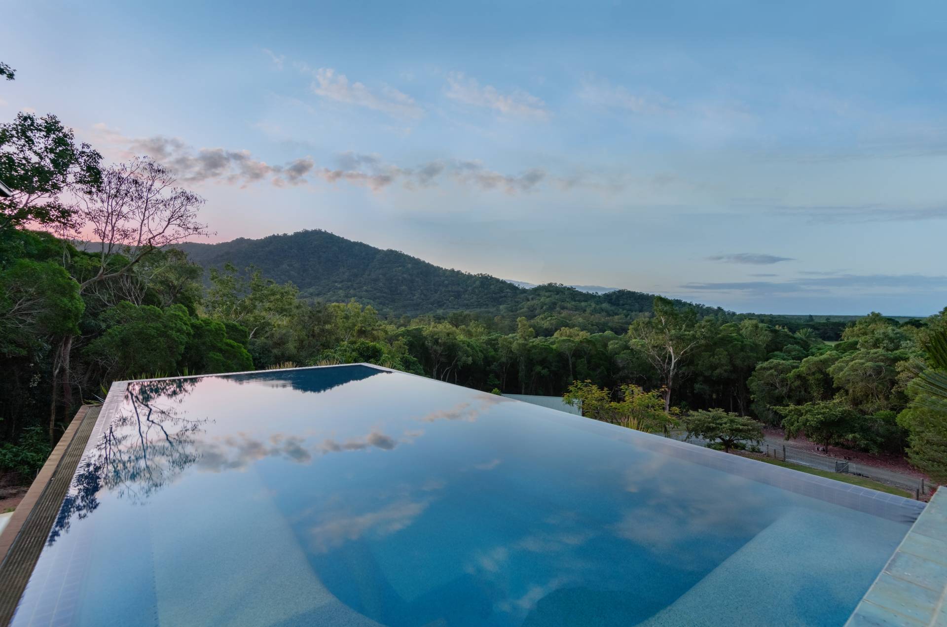 The incredible wet edge pool grabs your attention as you enter the property before your eyes adjust to the horizon where the Coral Sea meets the reef and coastal islands. Immediately your senses go into relaxation mode, the beauty of the area is realised and the view will continue to impress with its interactivity, be it watching a circling sea eagle, racing clouds, a tropical storm, the daily passage of reef boats or the life of the valley floor and forest.