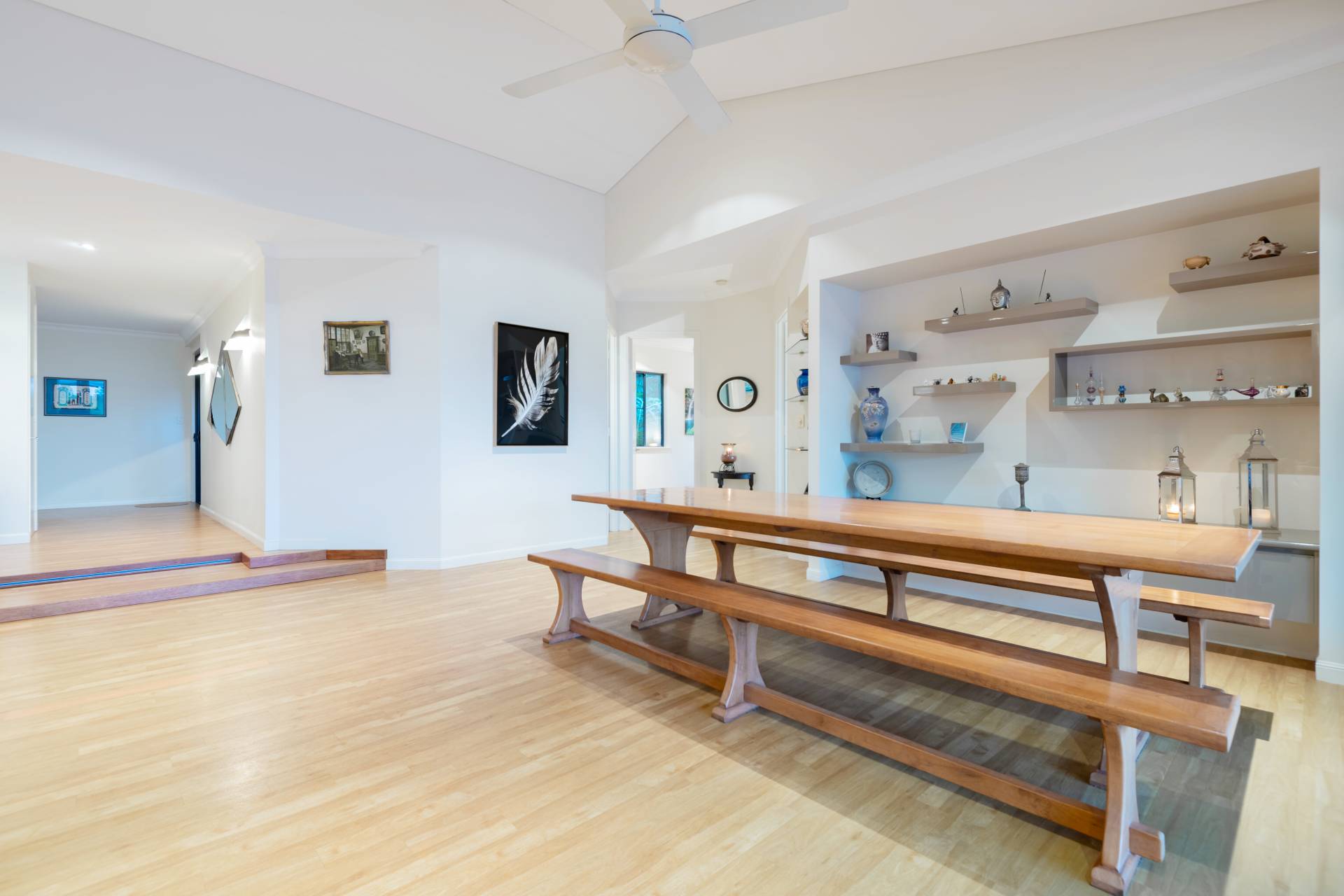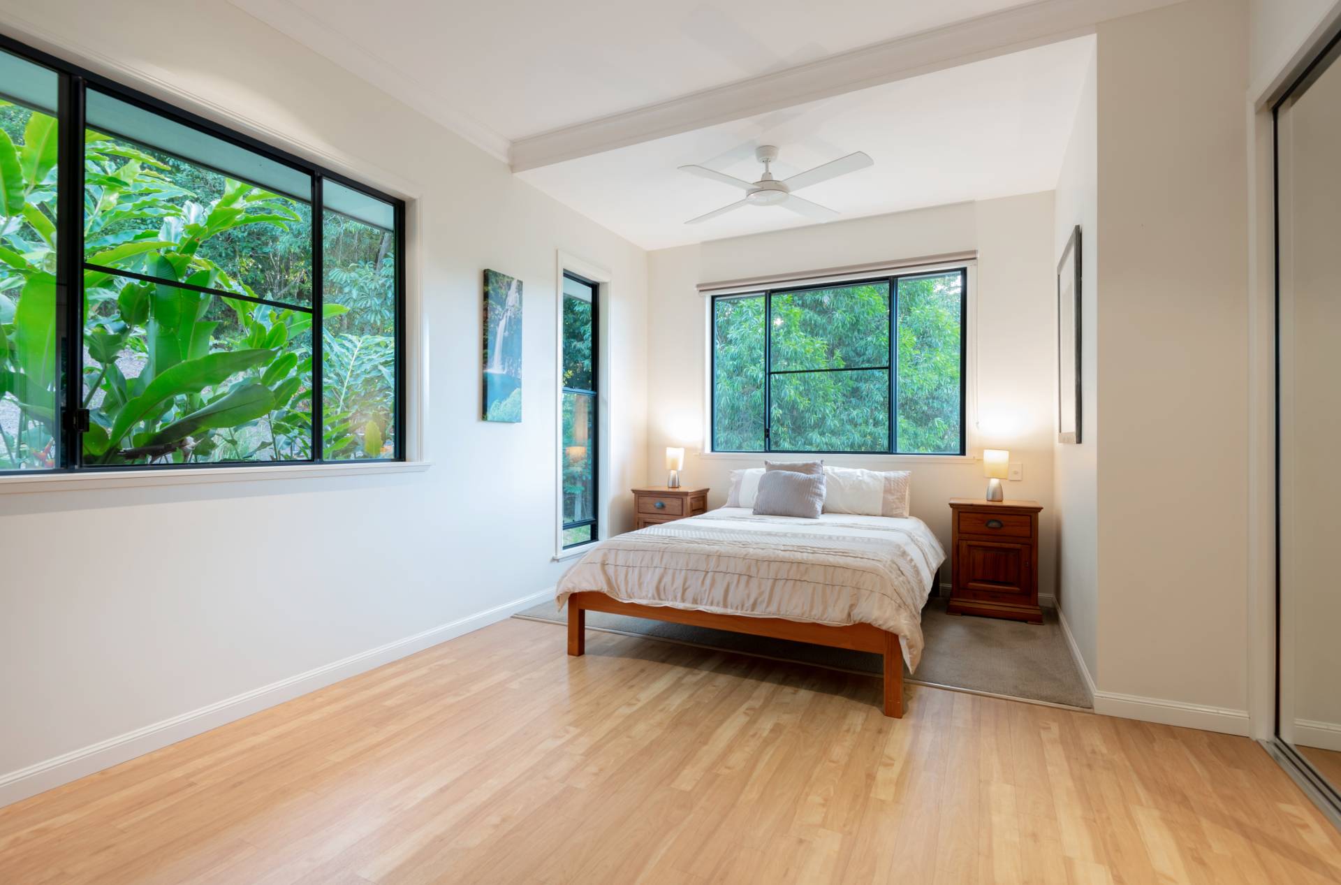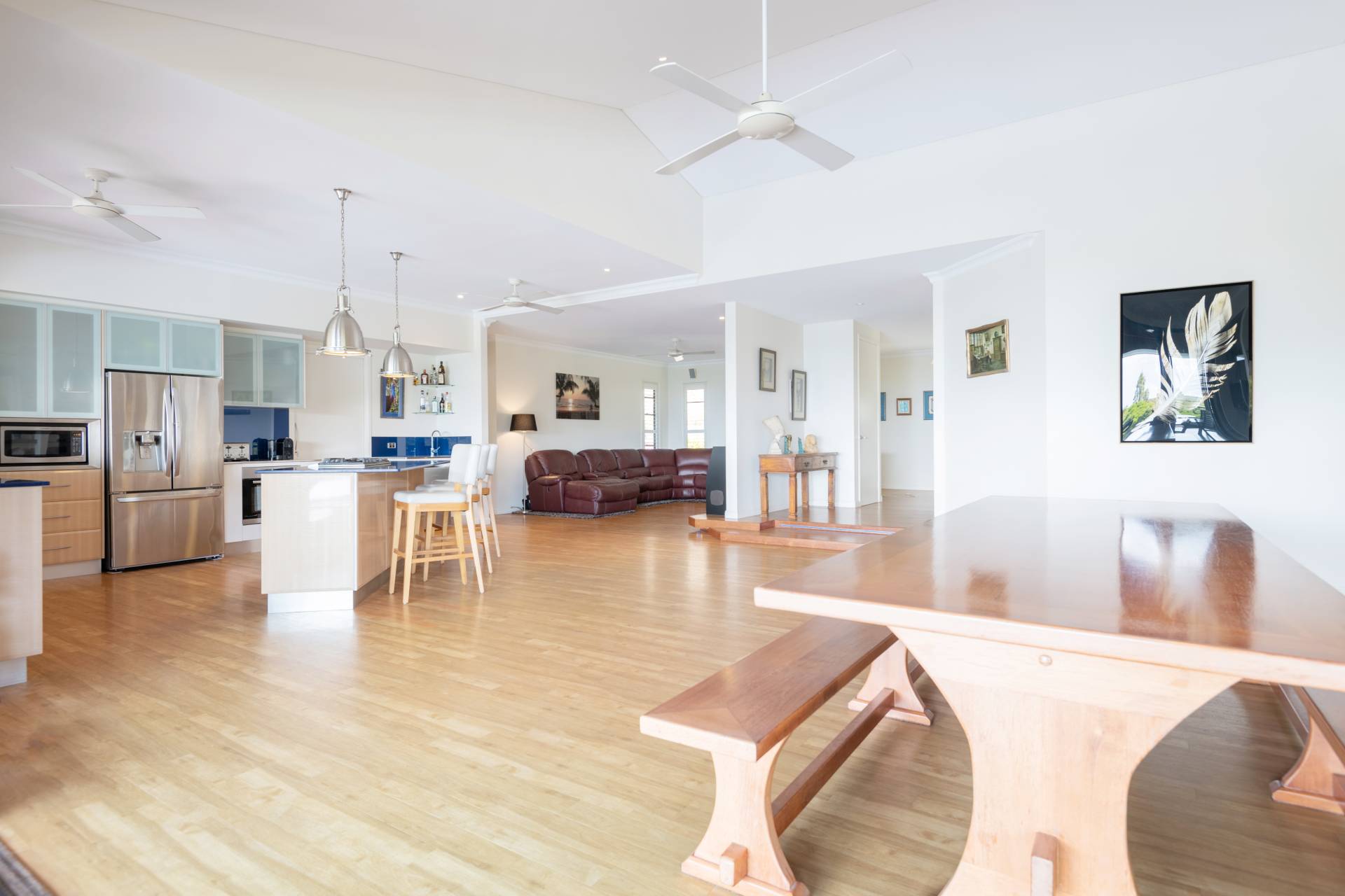 Inside the home views are offered from all rooms, two of the three bedrooms enjoying a coastal outlook and the other backdrop being the beautiful hinterland bushland. The openness of the living area flows through to the kitchen and then into the dining area so as to harness all the valley and coastal breezes on offer.