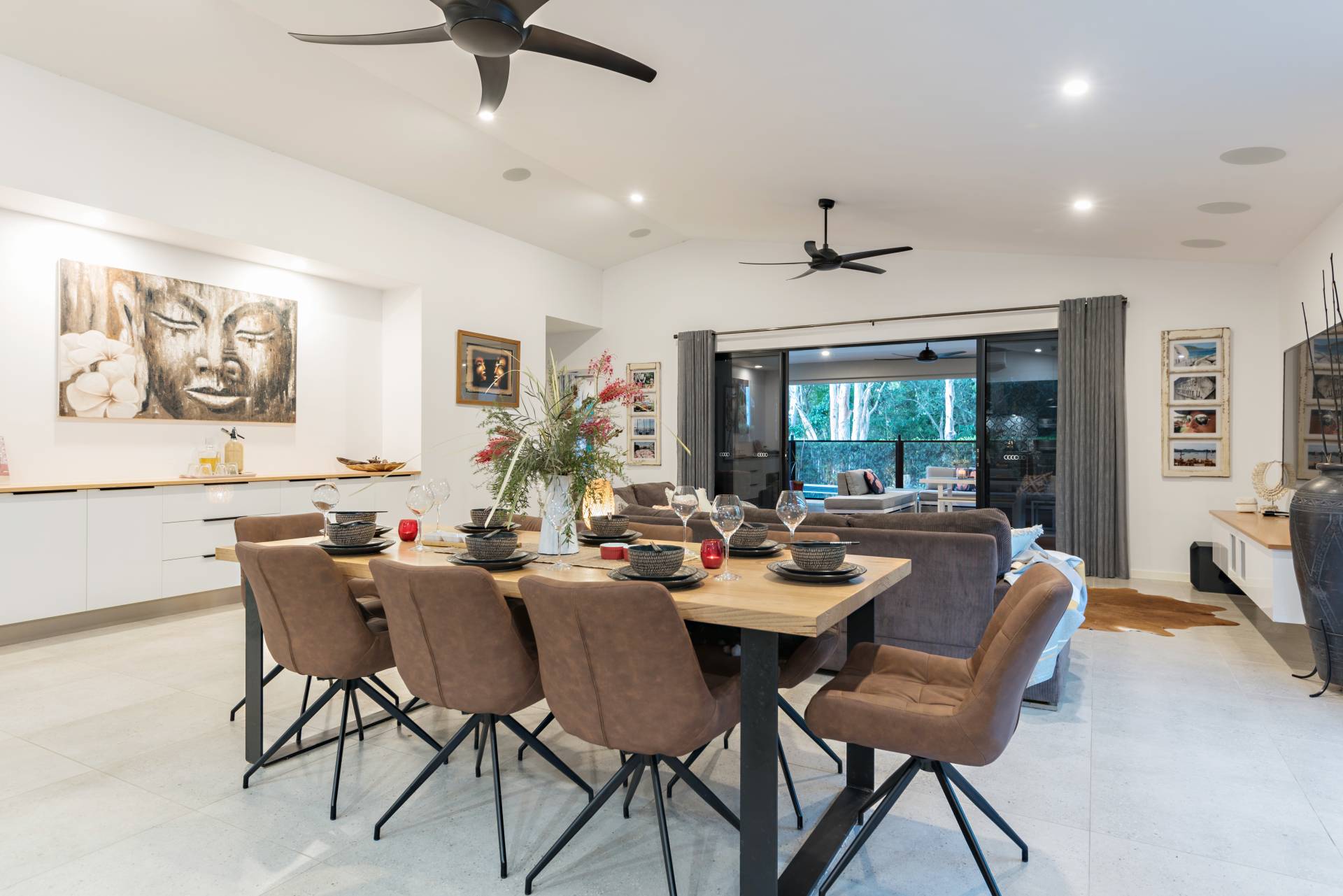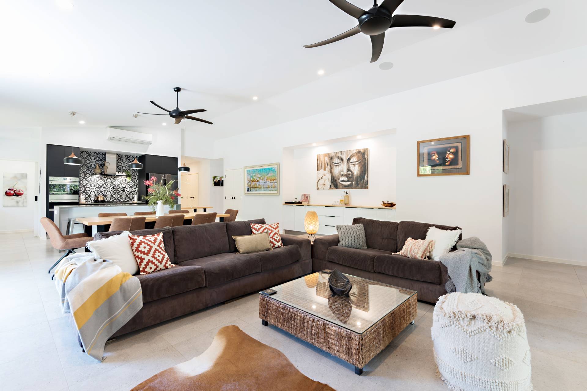 From the moment you enter through the front door you get the feeling of space as a wide breezeway leads right through to the heart of the home. Here the open plan living, dining and entertaining areas merge and flow beautifully. Whether you are cooking, dining, relaxing or luxuriating the interactivity of the spaces really works in keeping all connected.
