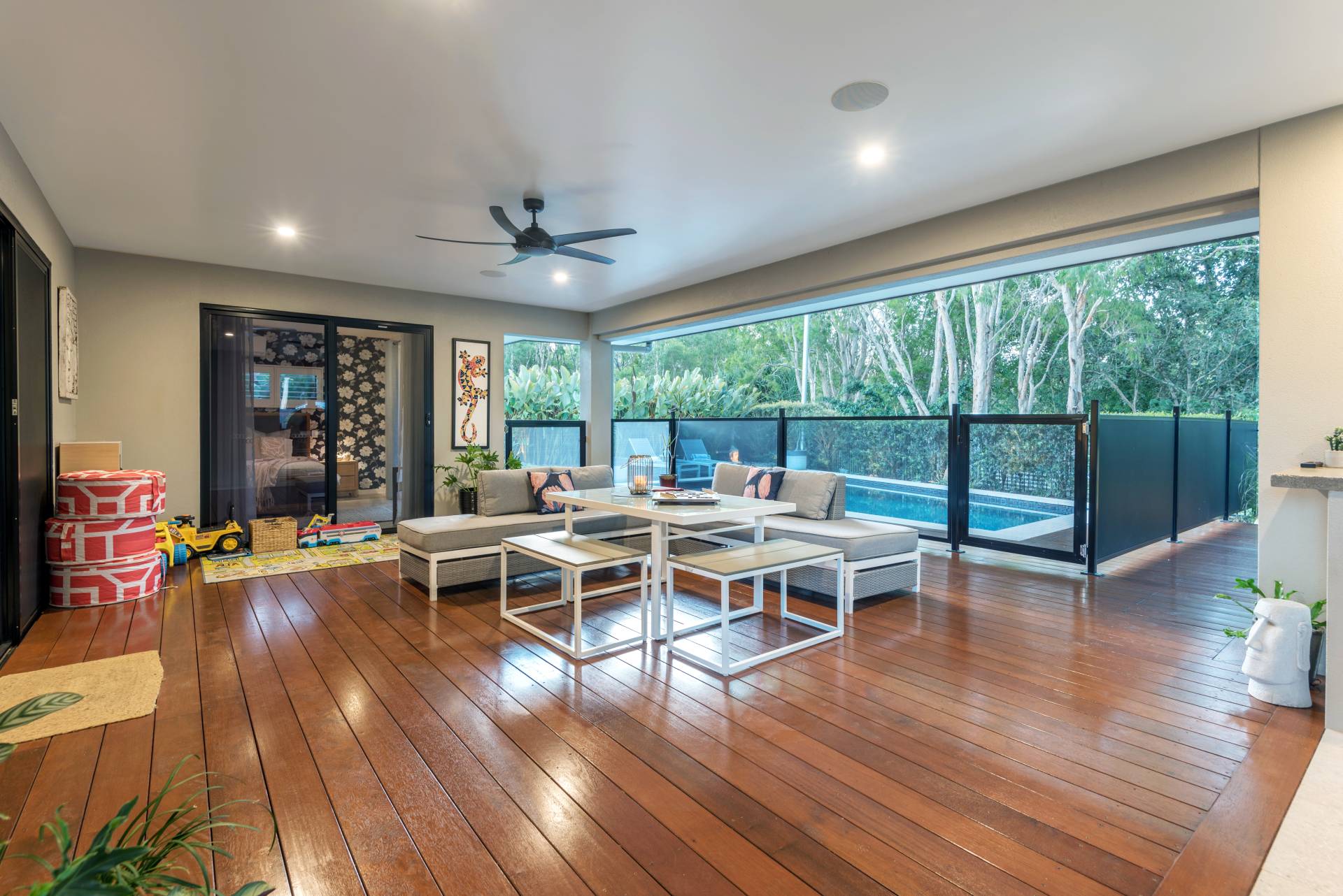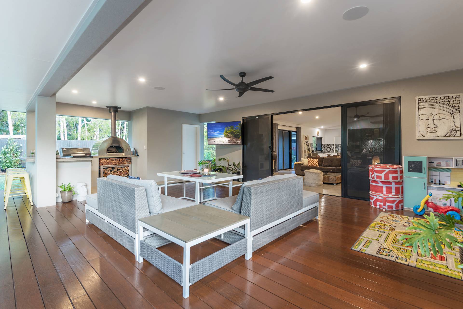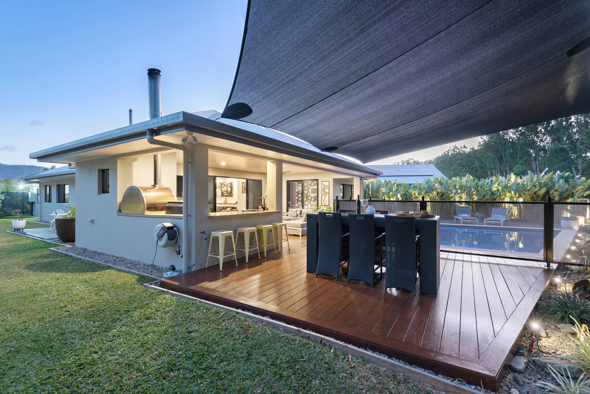 Living and enjoying the tropics is best done from the comforts of your covered patio – whether you are looking to float and splash in the full sized swimming pool, or creating the perfect pizzas, perhaps reaching for a cool refreshing beverage or simply enjoying the outlook over the yard and the majestic melaleucas beyond… it is here where you will be drawn.