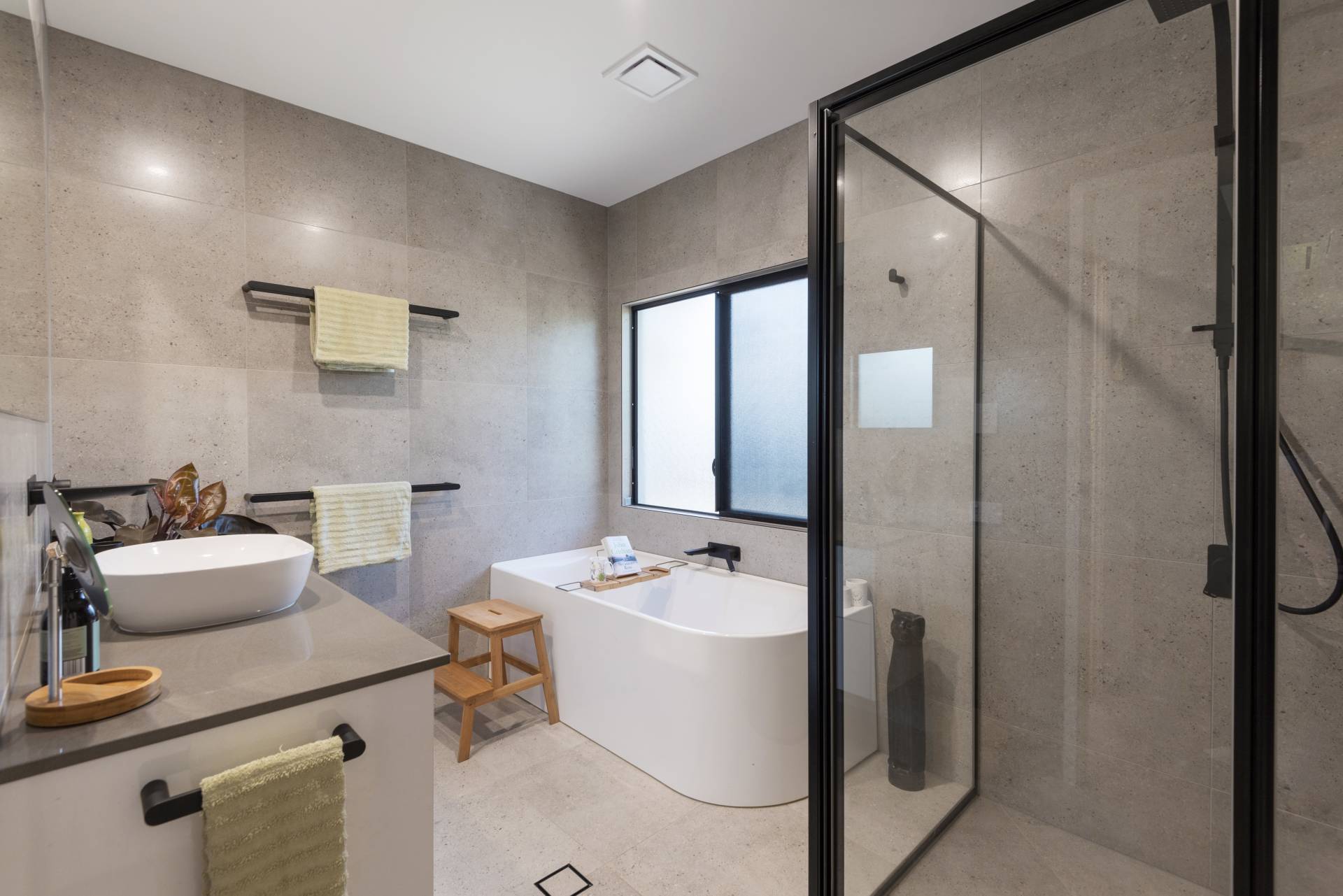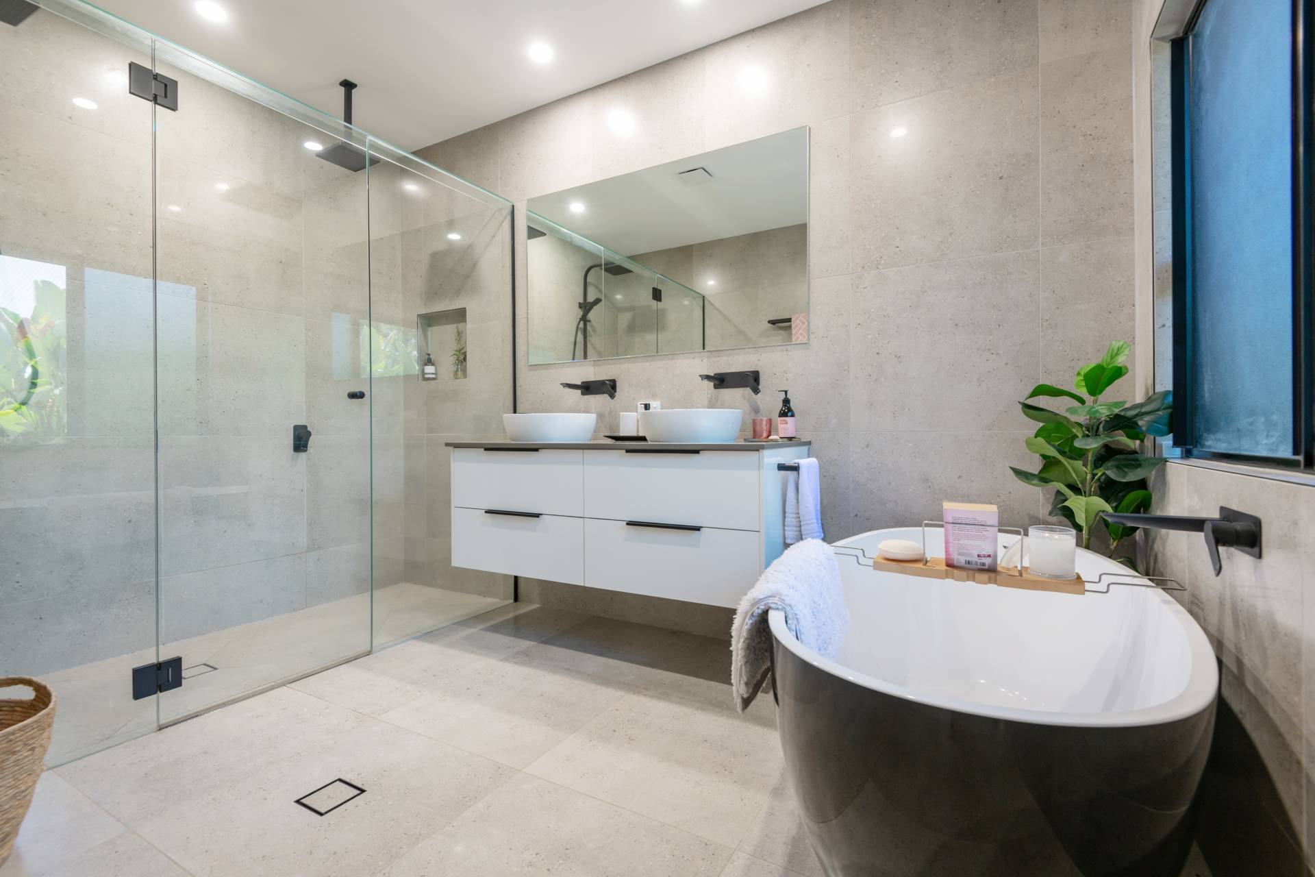 • Stone benchtops throughout vanities and kitchen, stunning and quality tap ware