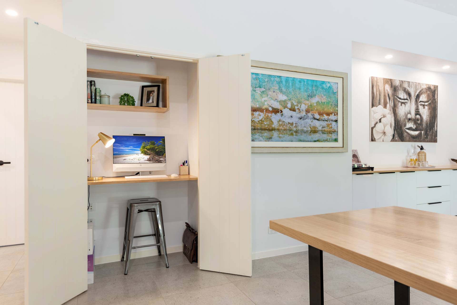• A massive open plan living and dining area complete with study nook, hard wired data and ceiling speakers
