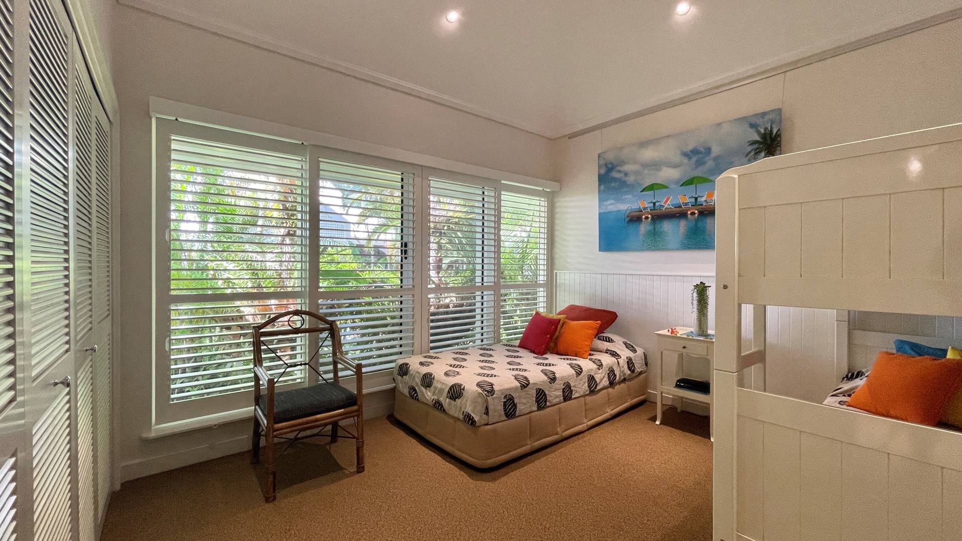 • Plantation sliding shutters to all bedrooms and security screens