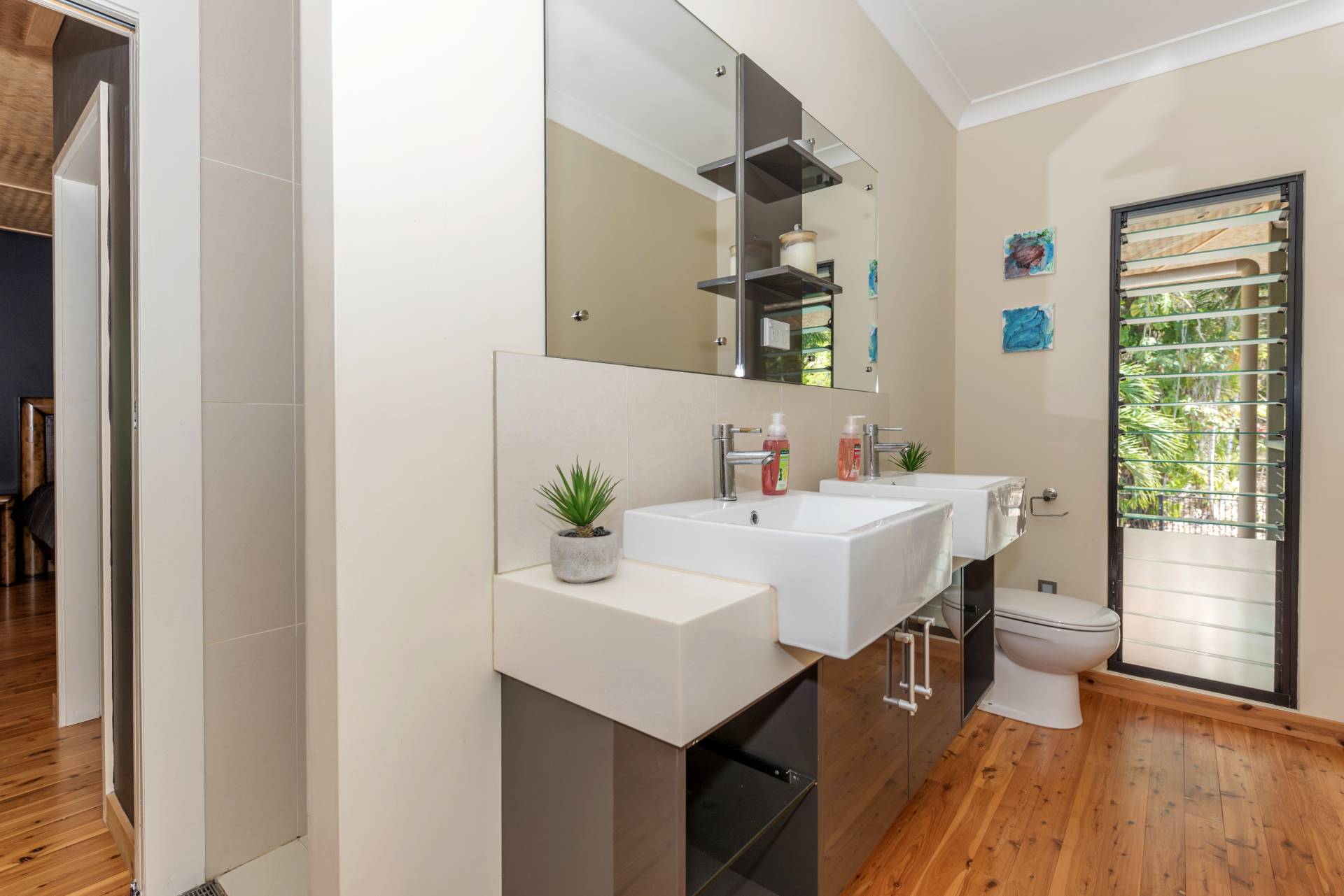 Upstairs the entrance landing unfolds into the huge open plan living & lounge room designed to offer space and airflow ideal for the tropics… following the flow of the home and the Cypress timber flooring you will find yourself passing the impressive kitchen & being drawn outwards to the even more impressive entertaining and dining deck. Here I am sure you will spend a lot of time overlooking the grounds & the pool whilst enjoying the Mowbray serenity. When you are ready to retire for the night, two (2) main sized bedrooms both with ensuites and walk-in robes await.