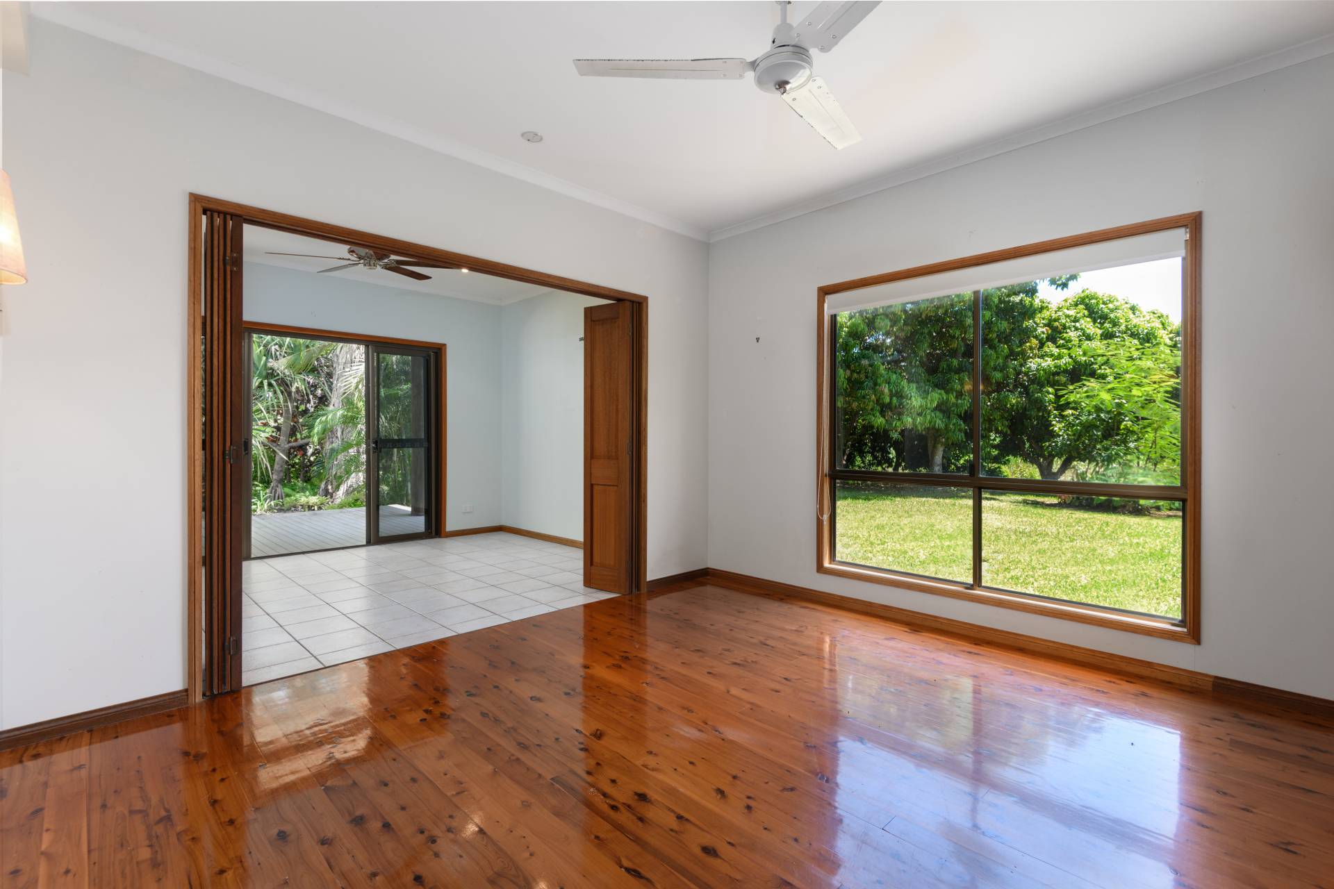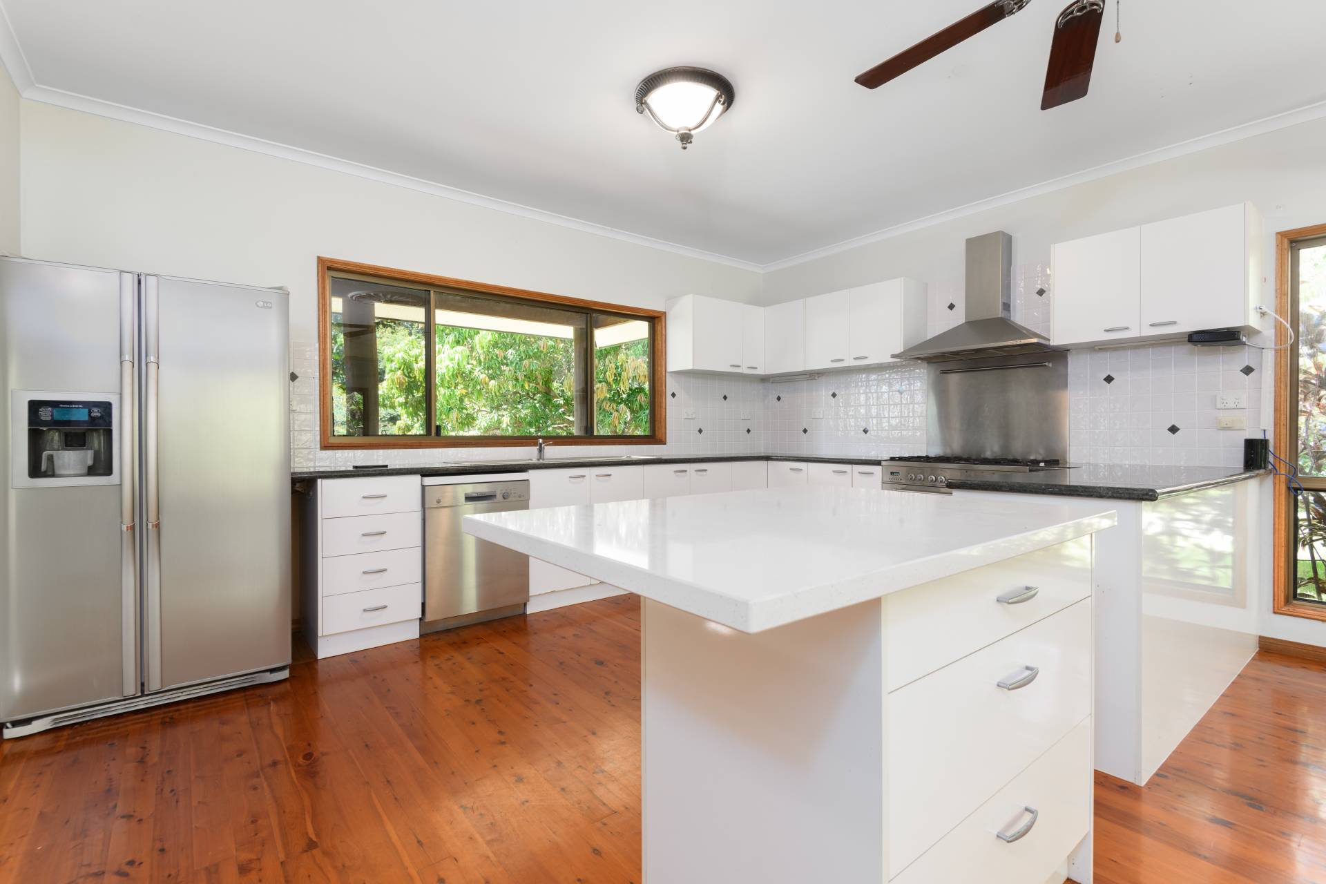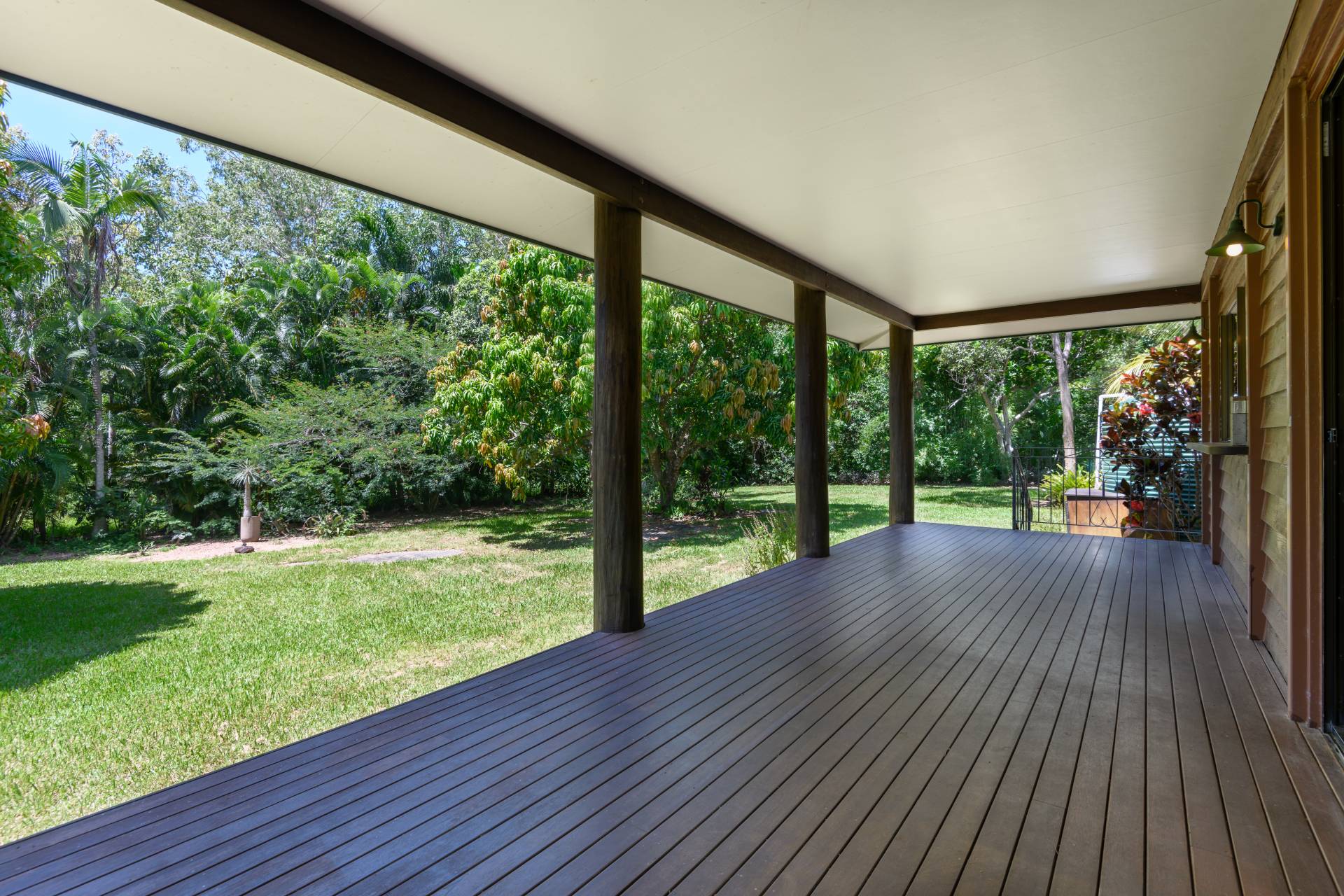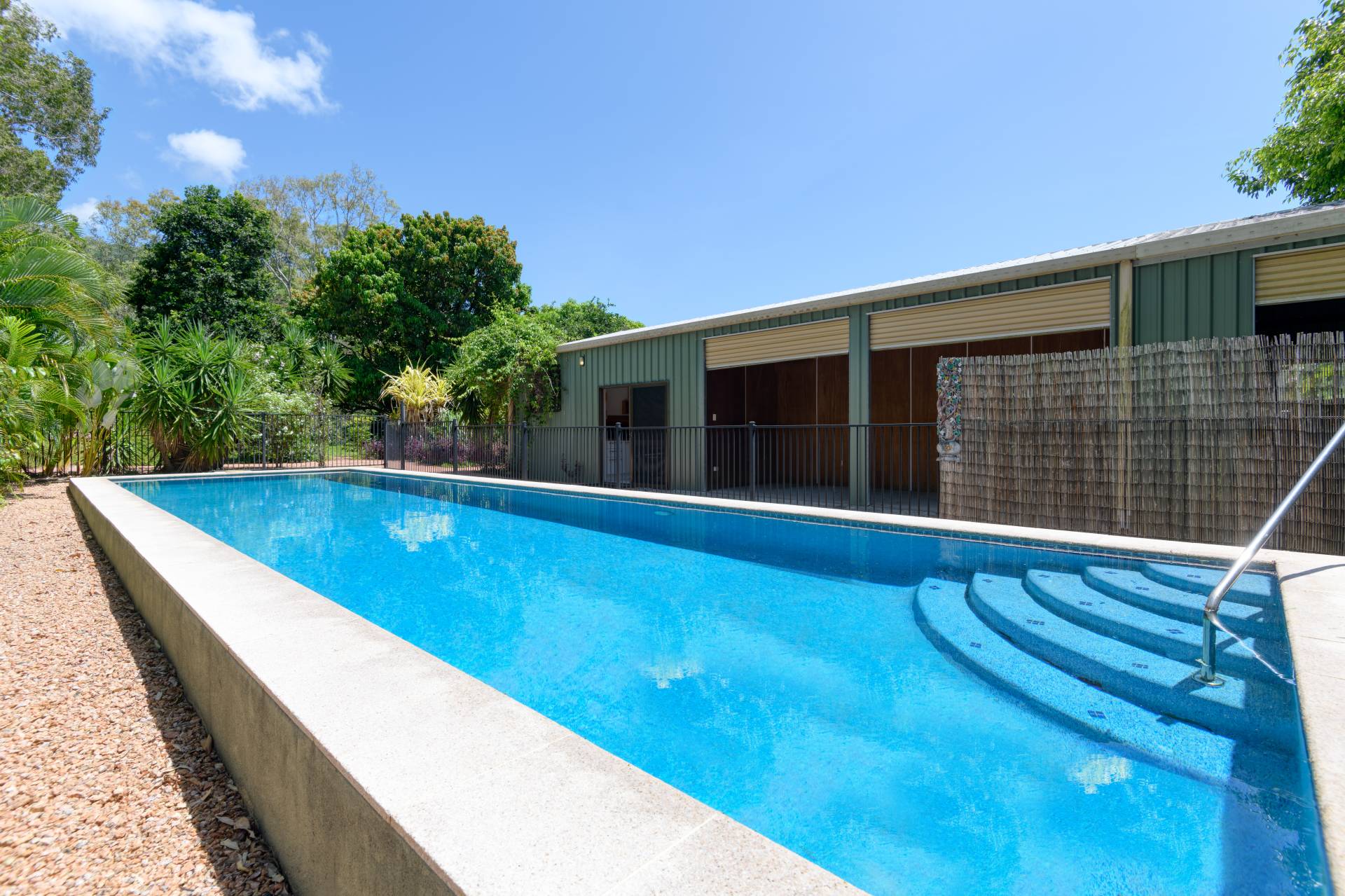 A long palm-lined driveway leads you to the timber built homestead. Here, over two levels, the property offers two bedrooms and two bathrooms, an office, chefs’ size kitchen and two large living spaces flanked on two sides by large timber decks. Loads of natural light and airflow throughout.