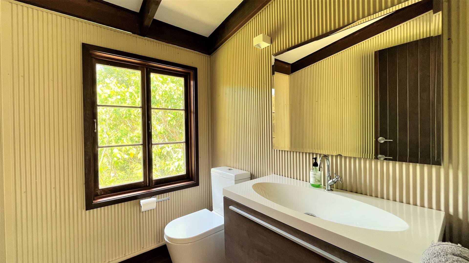 This 2.17 hectare property boasts an array of uninterrupted sweeping views over the surrounding rainforest and hills, along with acers of your very own lush pasture. This 3 bedroom, 2 bathroom residence features a western red cedar exterior, along with varnished timber floors throughout the living areas and bedrooms. All the timber on the property has been expertly maintained and is in perfect condition.