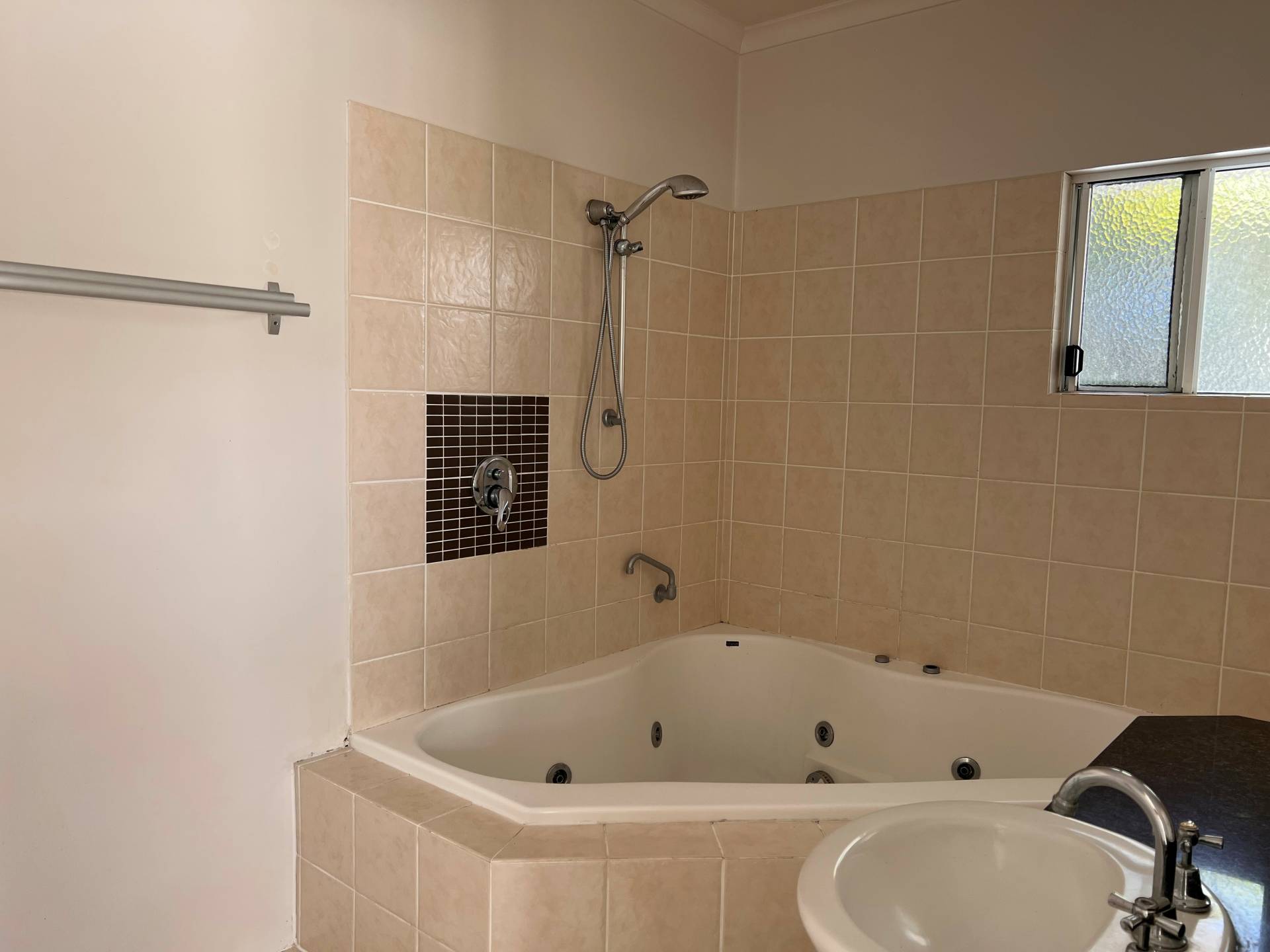 Upstairs you will find the 3 bedrooms and 2 bathrooms.  The bedrooms all have air-conditioning and built in robes, the ensuite is highlighted by a large corner spa bath.