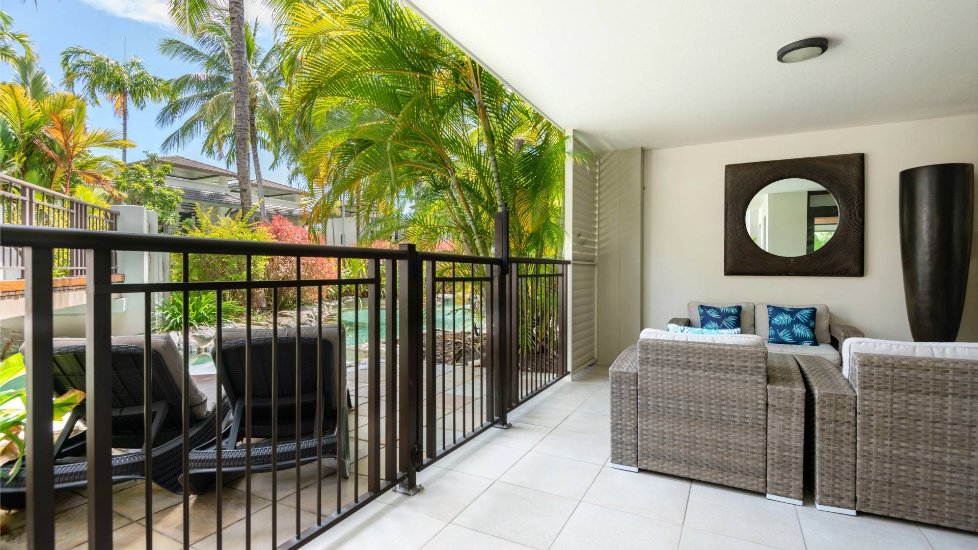 Ideally located overlooking the private landscaped island within the pool that houses the superb pool bar. Your choice, either swim up to the bar or take the foot bridge adjacent to your patio.