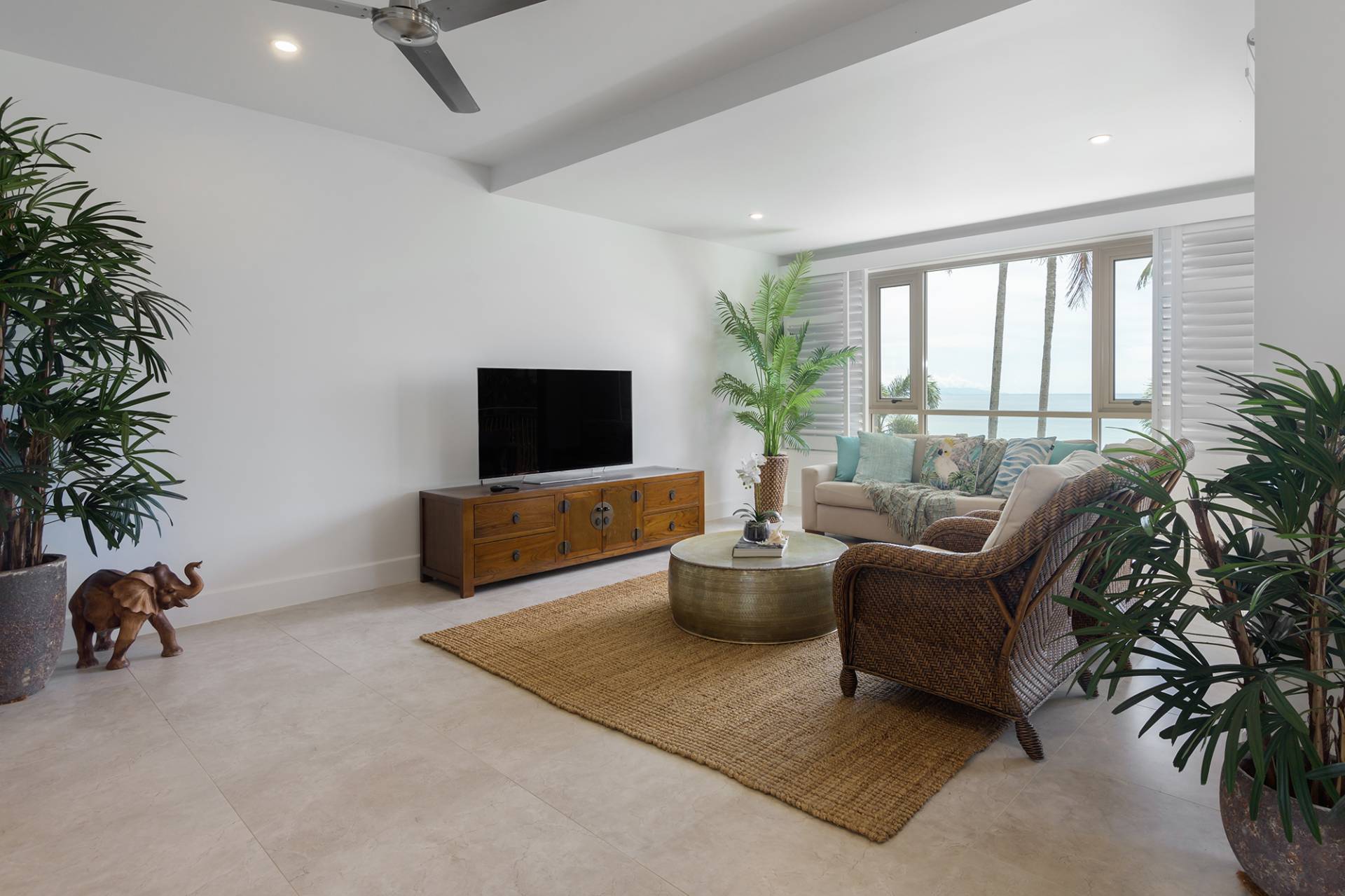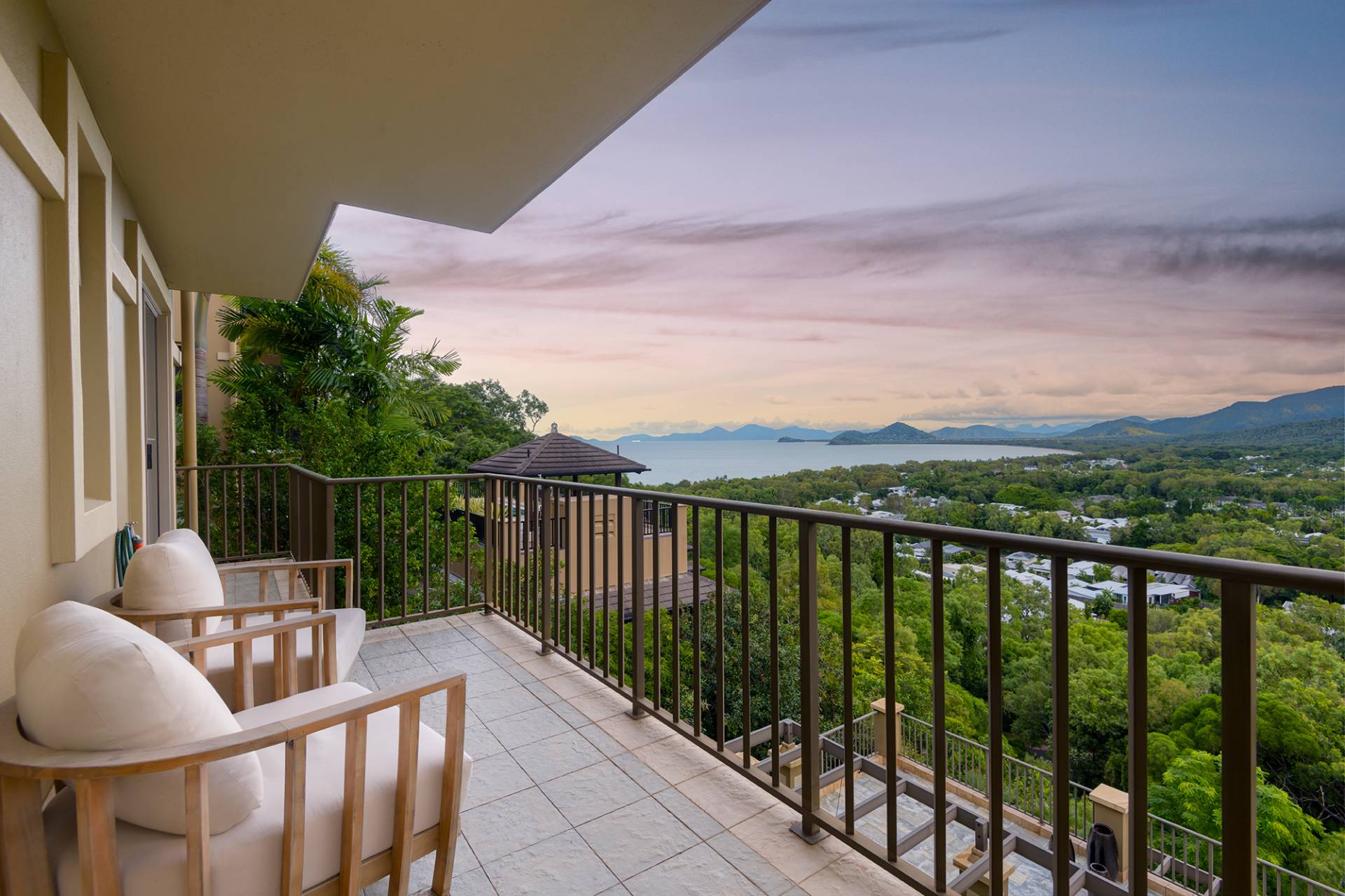 From the Master bedroom, you have access to the north-facing balcony with views over Buchans Point Beach and up the coastline towards Port Douglas.  The tastefully decorated suite features a King ensemble, full-size bathroom with double vanity and claw-foot bath, and a large built-in wardrobe.