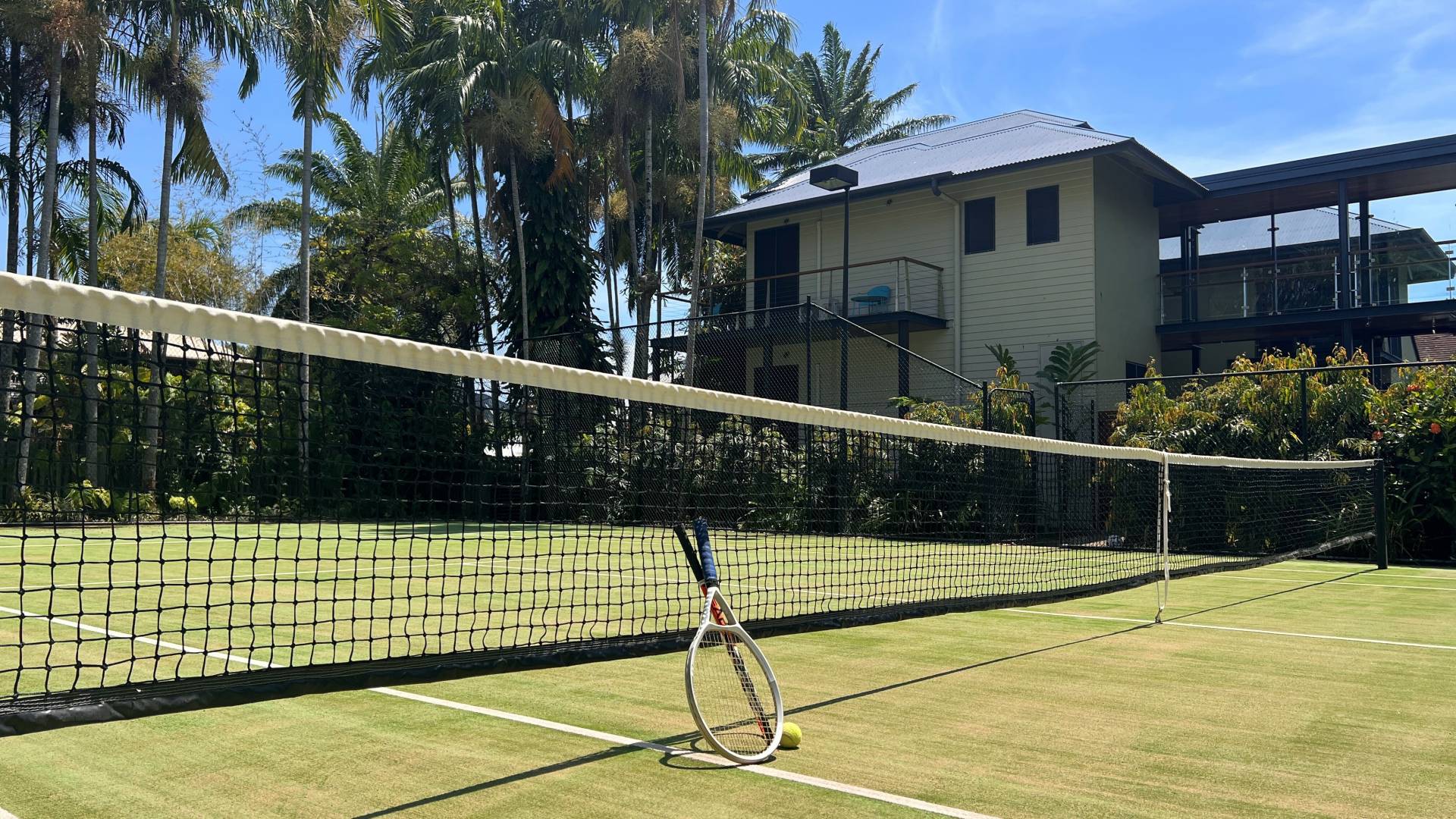 Water gardens lead to a large pool with sun-deck - the perfect way to cool off after a hit of tennis on the full-size court.