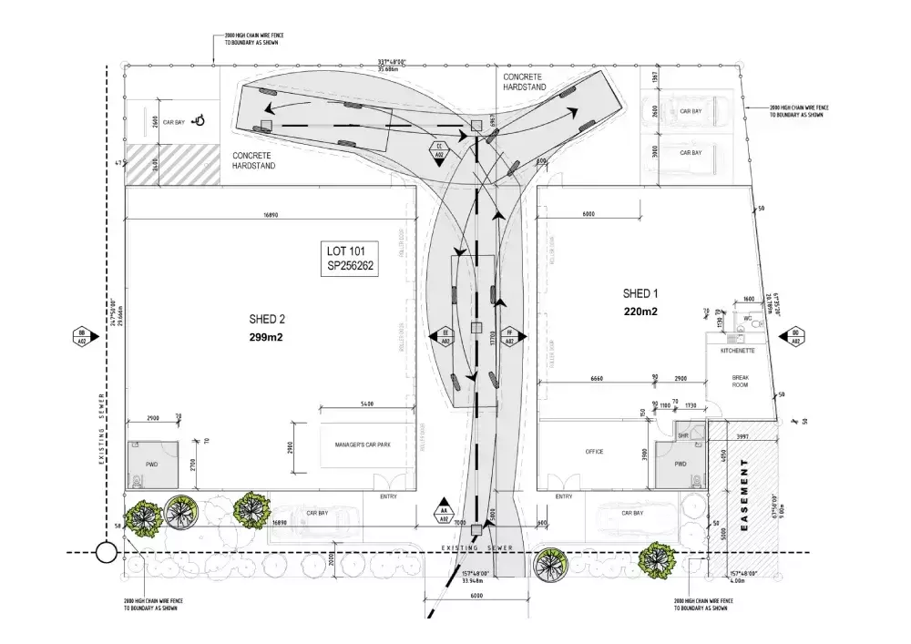 Secure fencing surrounds the concrete tilt slab sheds that currently house the business, RAM Metalworks and the neighbouring Shade Sails.