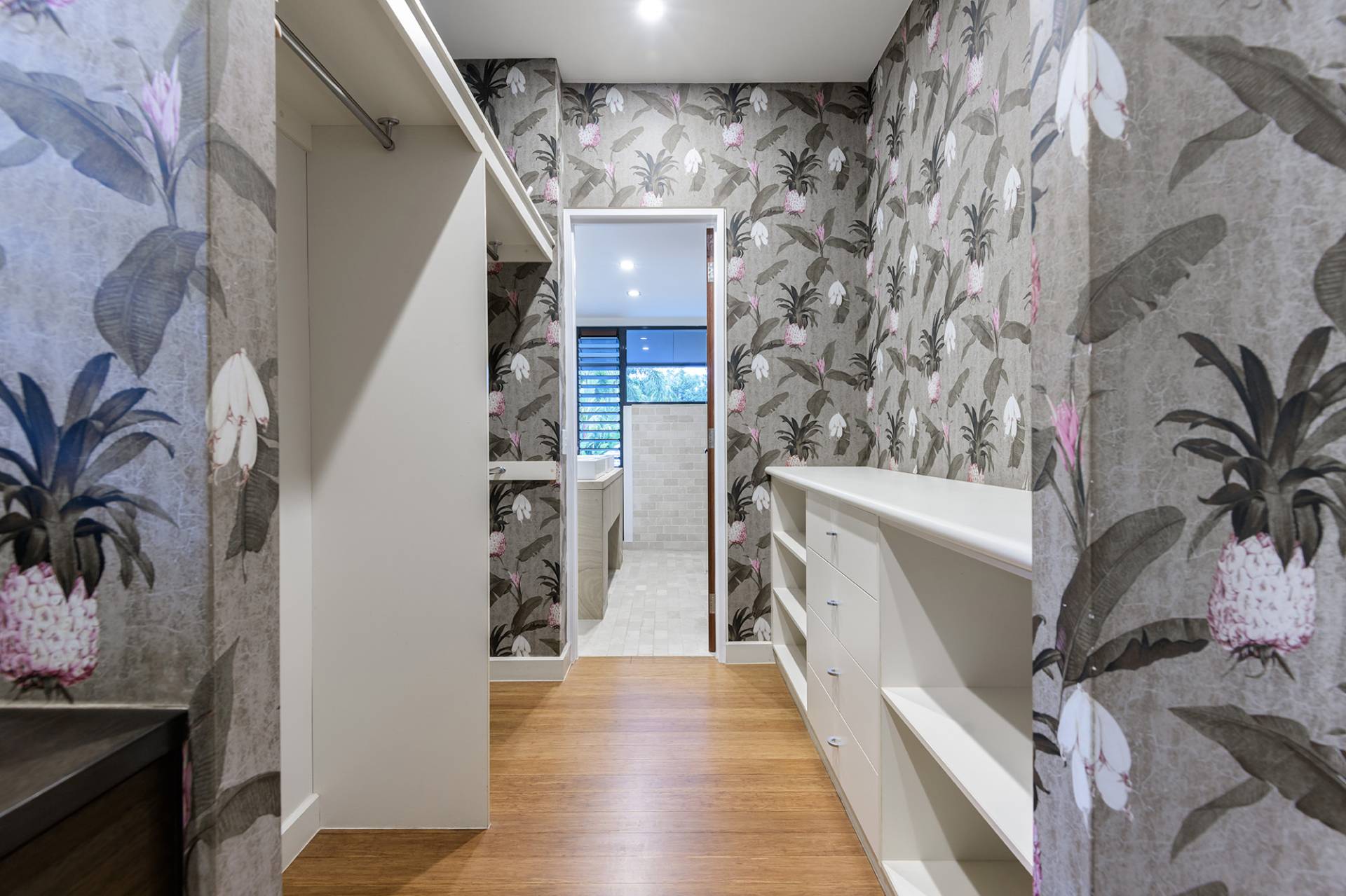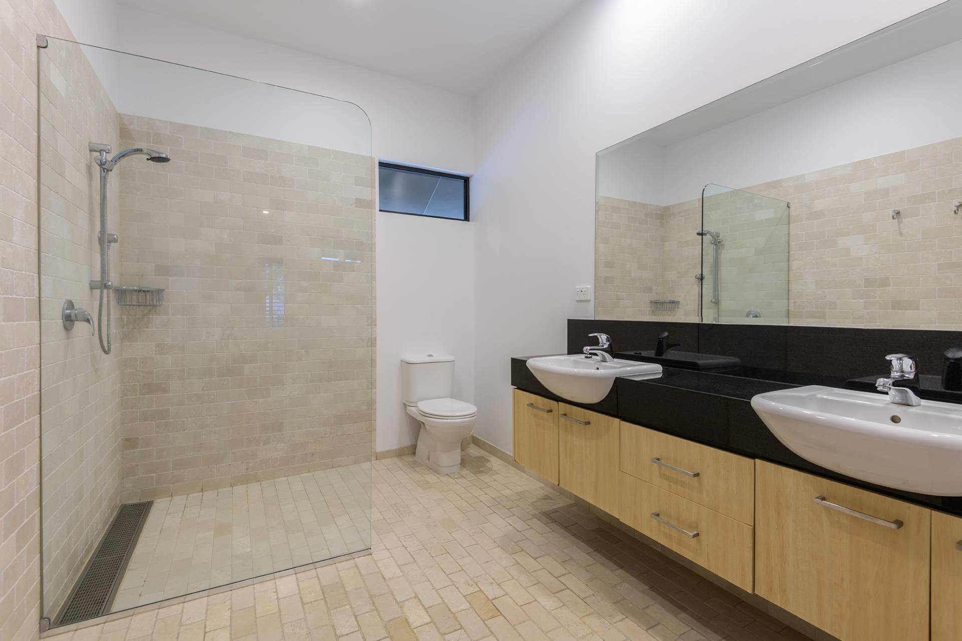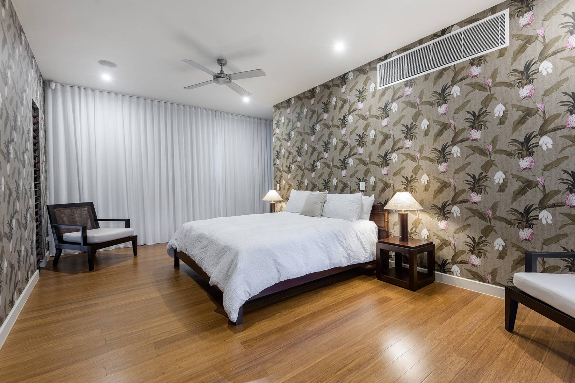 Five large bedrooms and 5 bathrooms spread over 2 storeys' linked by covered timber walkways.