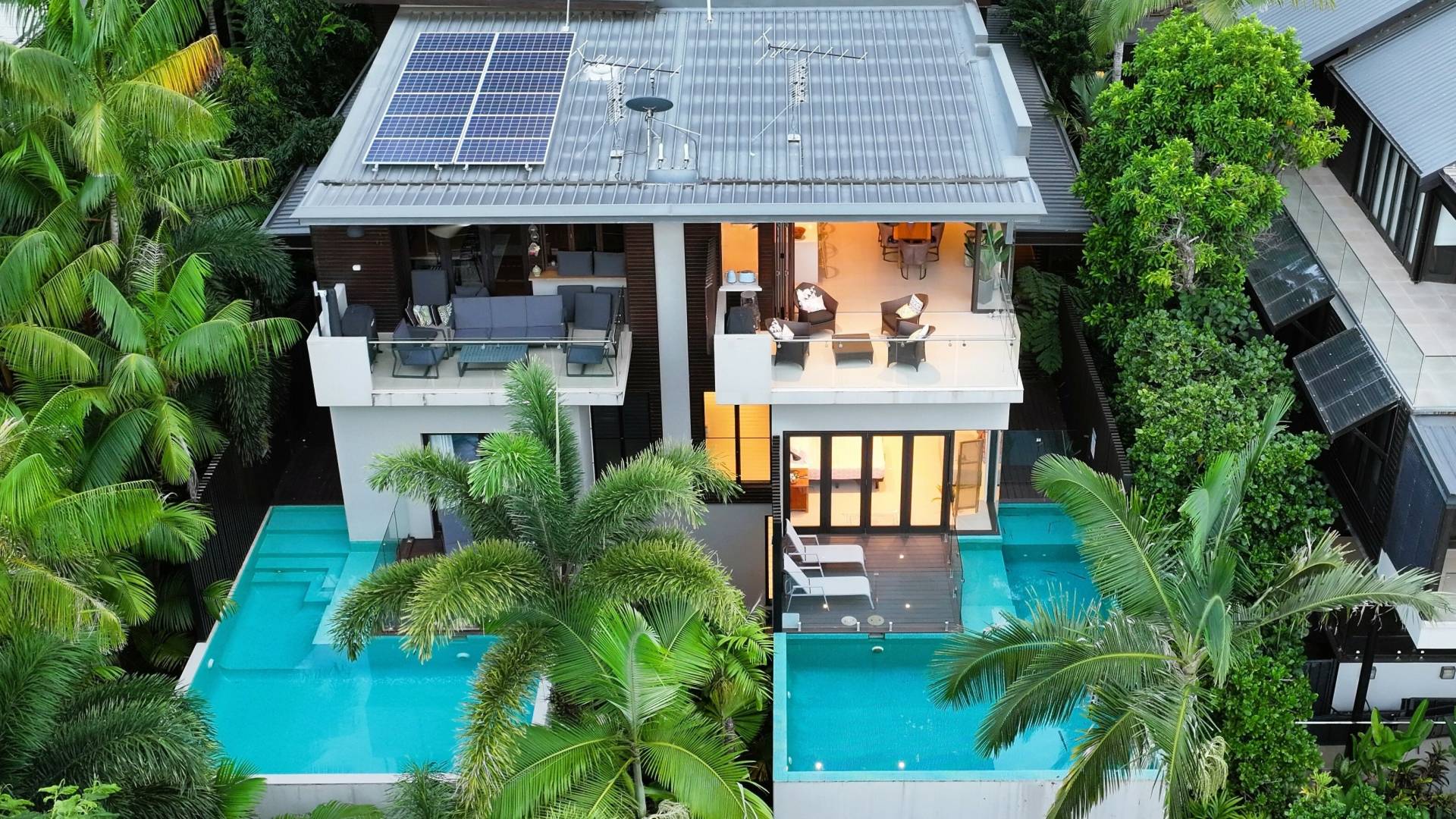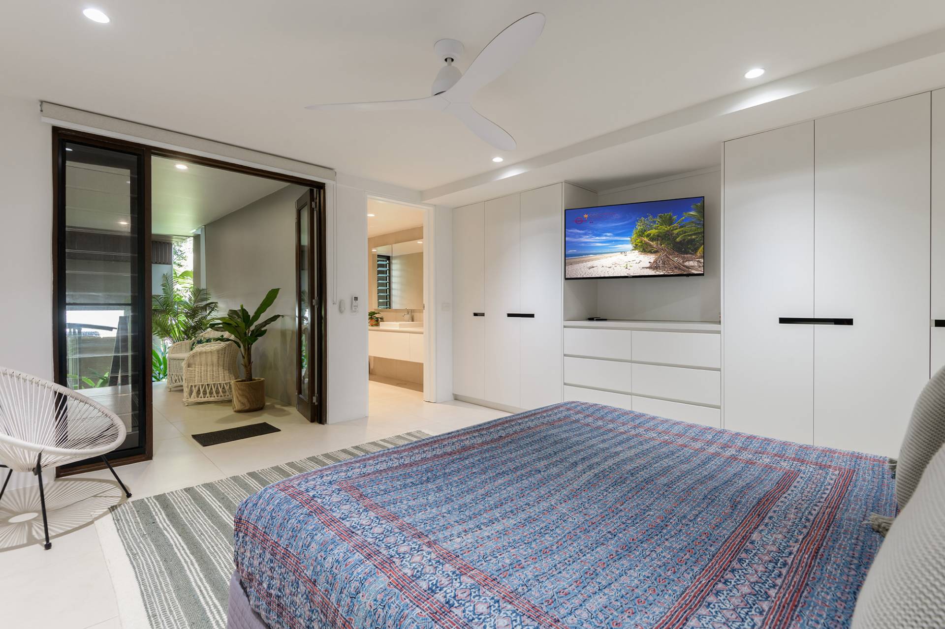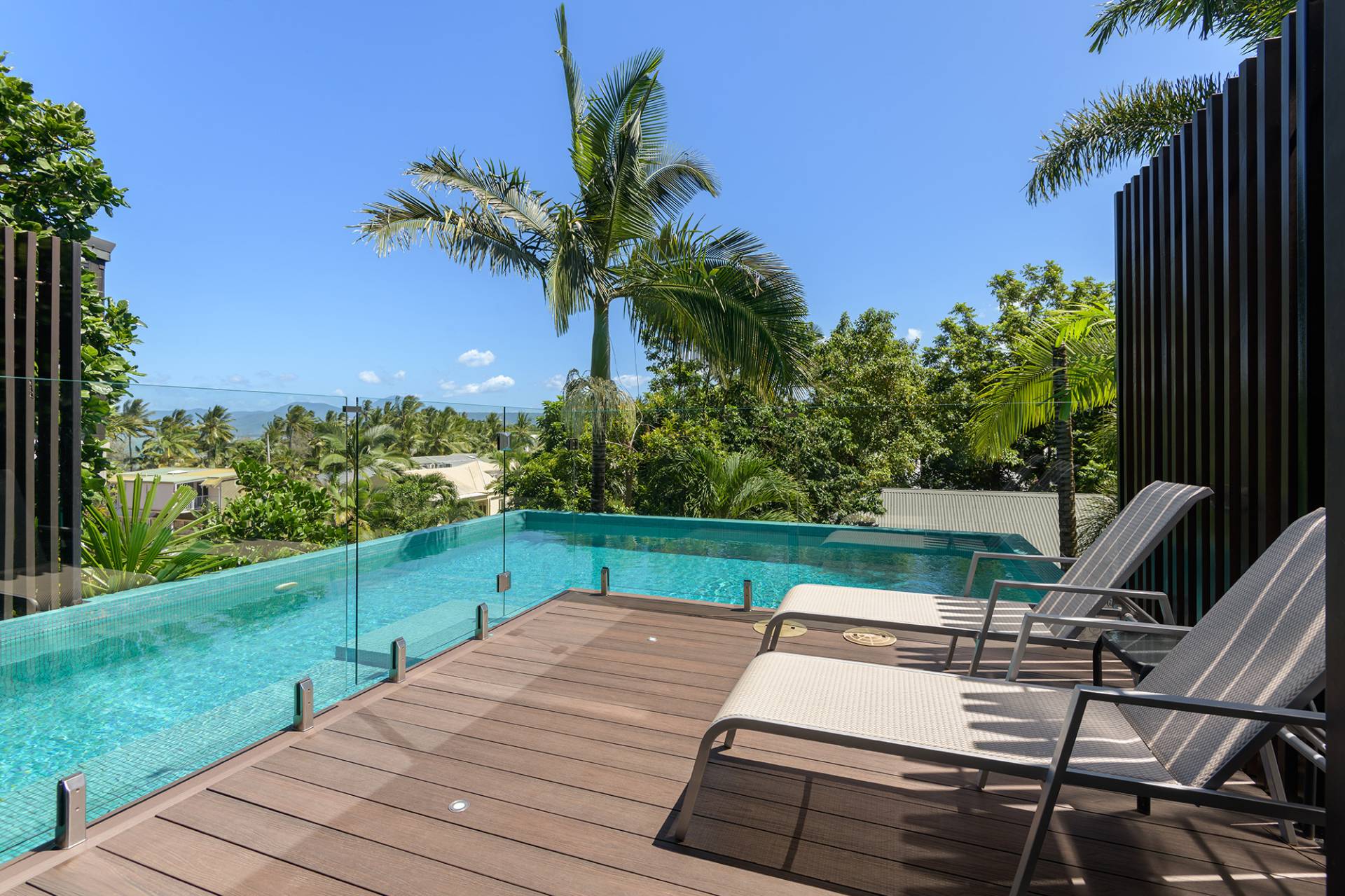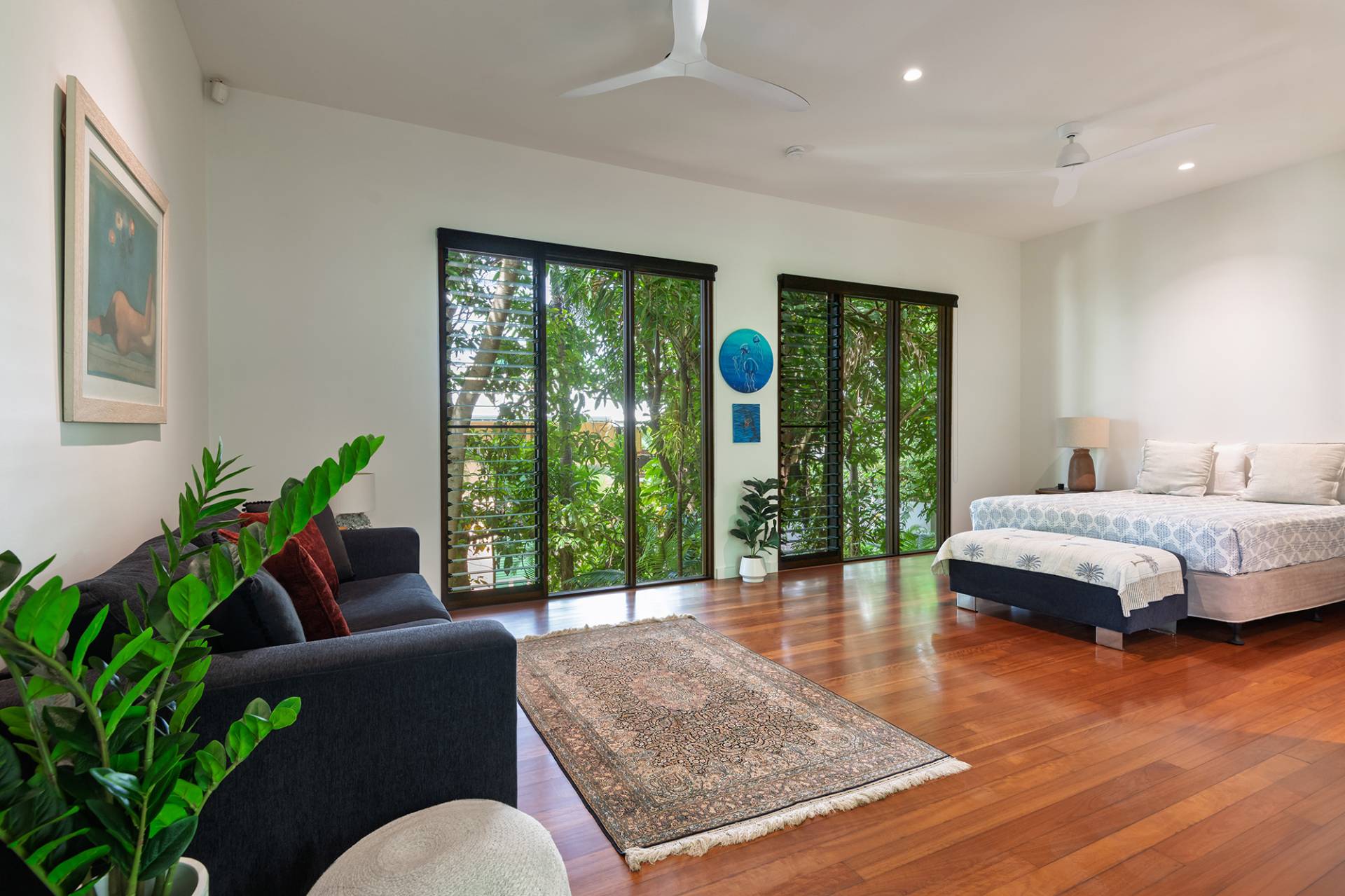 • The sensational guest retreat is accessed via an elevated, timber walkway flanked by tropical palms – this incredibly private space has a private garden outlook, outdoor patio with kitchenette and screams ‘relaxation’.