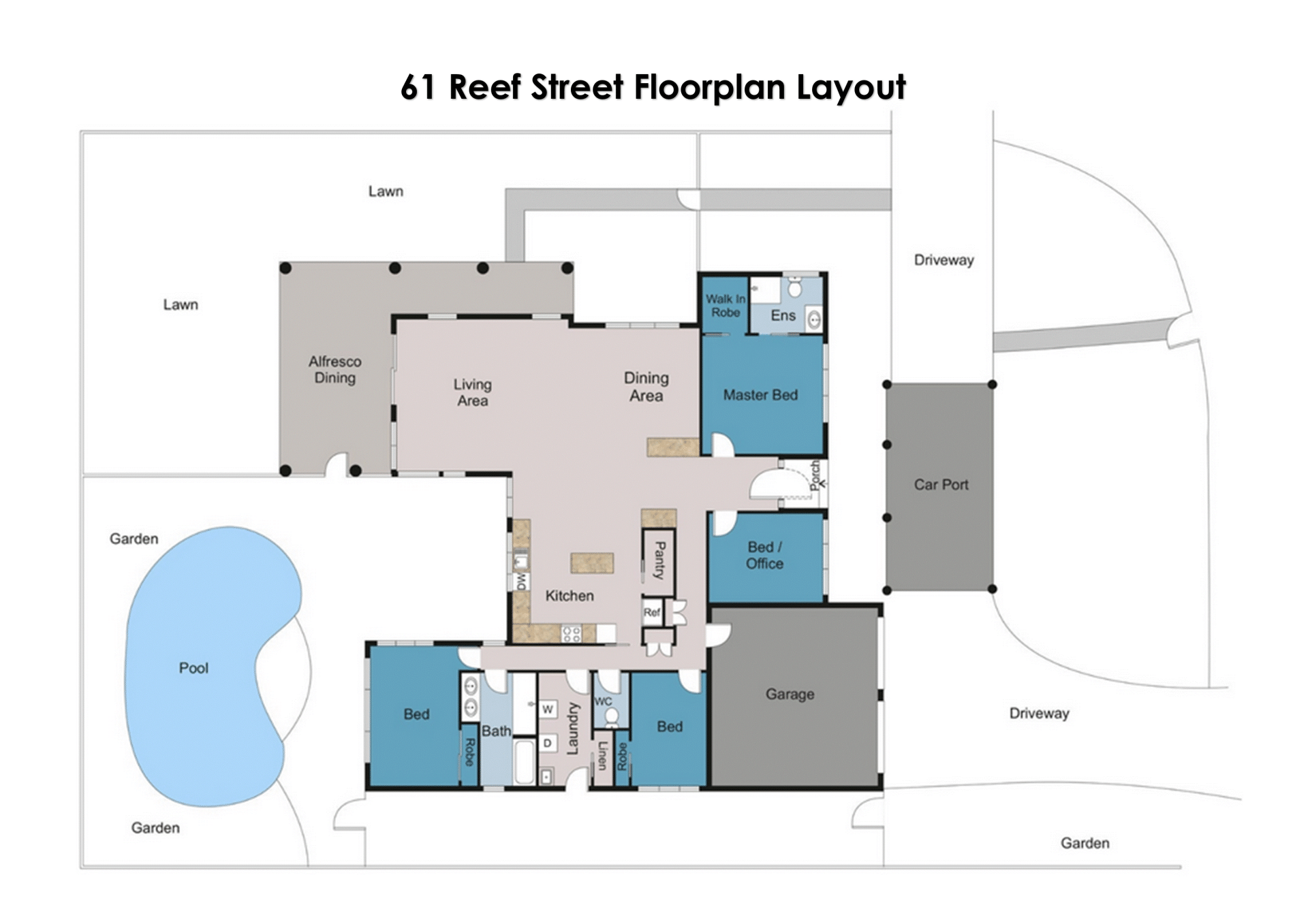 A corner site of fantastic proportions measuring 854m2 with dual street access from Reef Street and Trochus Close. A location that caters for a very light amount of local traffic only.